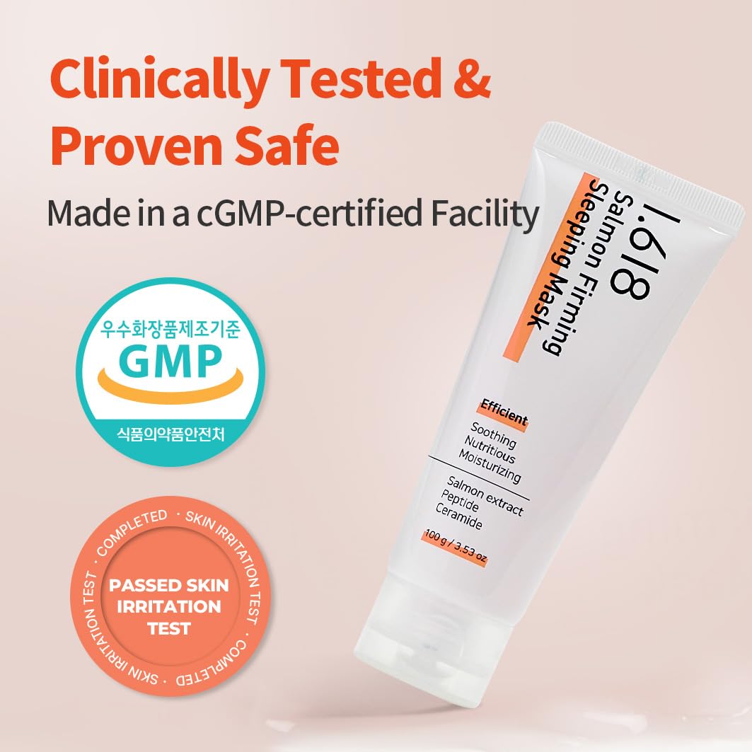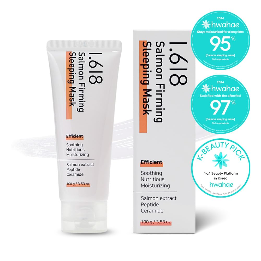 1.618 Salmon Firming Sleeping Mask with Ceramides & Hyaluronic Acid – Hydrating, Soothing, Anti-Wrinkle Overnight Face Mask for Dry & Sensitive Skin | Fragrance-Free | K-Beauty | 3.53oz