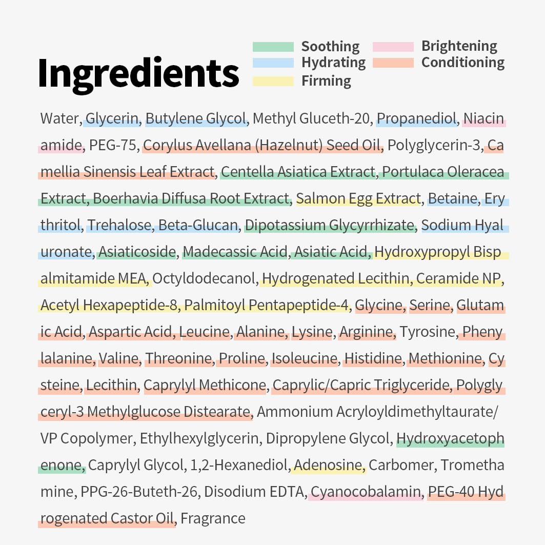 - ✔Infused with 11 key ingredients including salmon egg extract, ceramide, and peptides.
