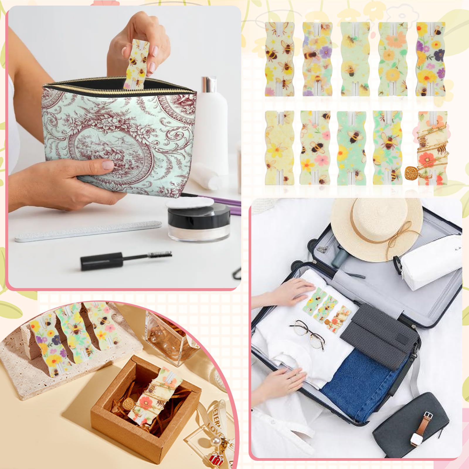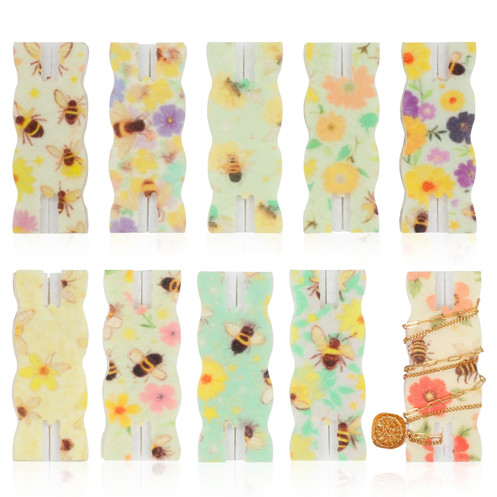 10 Pack Portable Tangle-Free Jewelry Organizer, Travel Necklace Storage Case for Chains, Pendants & Bracelets, Jewelry Containers with Card Holder, Anti-Tangle Jewelry Roll Alternative (Bees)