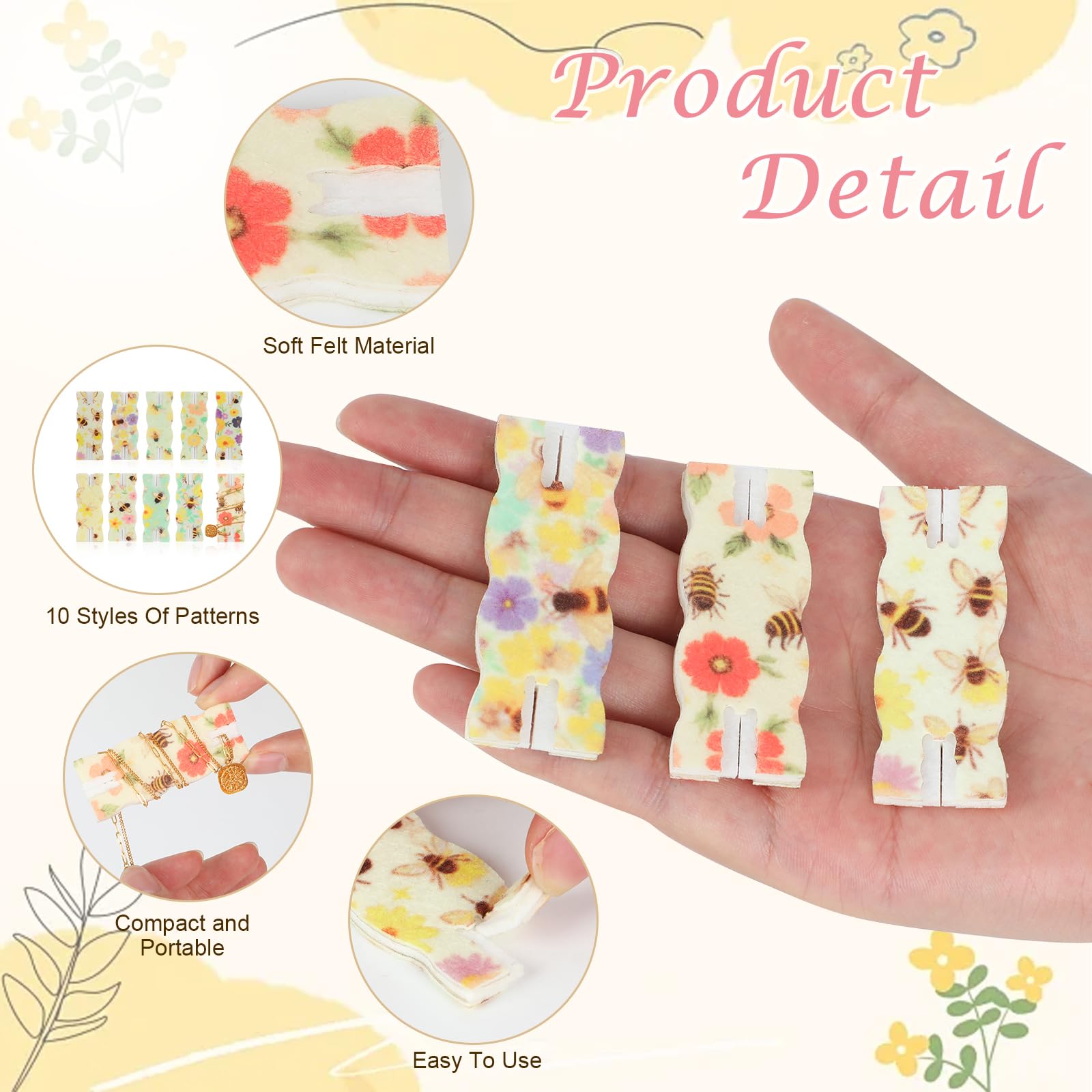 Details: Portable Tangle-Free Necklace Organizer – Travel Jewelry Storage Cards in Floral, Leaf, or Bee Design