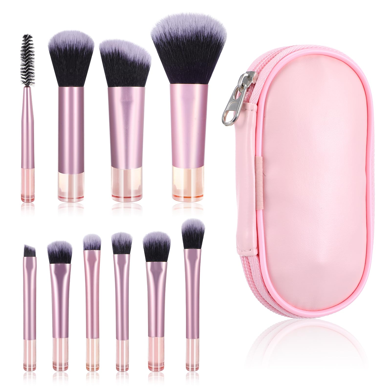 - 【Portable Mini Makeup Brush】This mini travel makeup brush set is easy to carry and contains ten mini travel makeup brushes, including foundation brush, eye shadow brush, contour brush, eyebrow brush, highlighter brush, blush brush and mascara brush. This mini makeup brushes travel set is designed for travel, outdoor use or daily makeup, so you can get perfect, professional makeup results every time