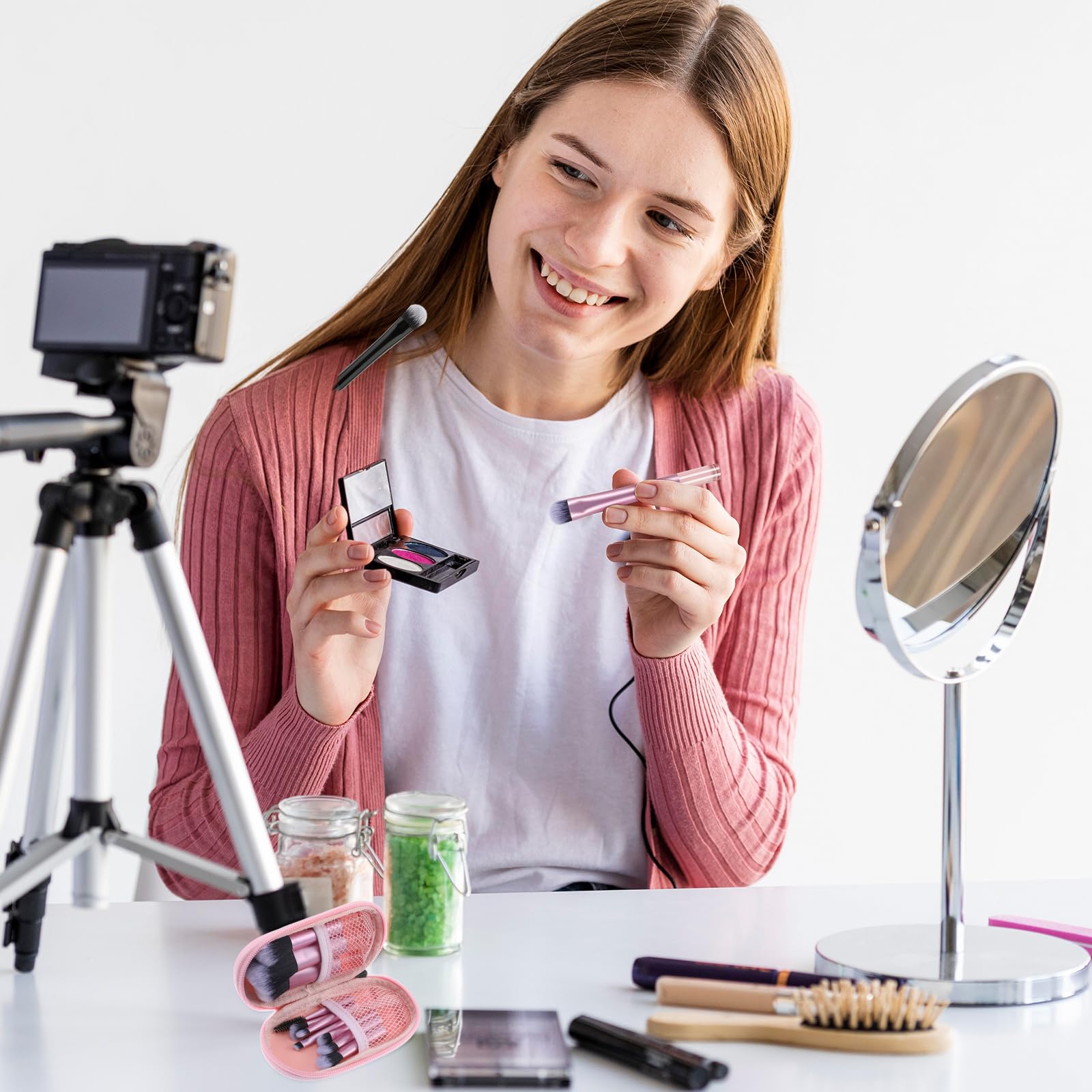 - 【Fashionable Design】The makeup brushes travel set adopts fashionable and lively pink color, and the appearance is fashionable and chic. It is a must-have in your makeup bag