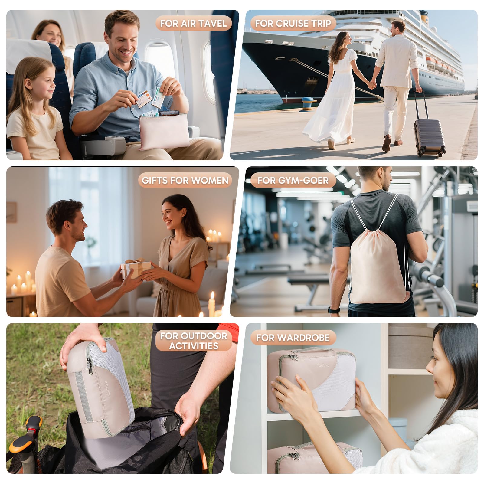 10 Set/8 Set Packing Cubes for Travel, Gifts for Women Mom,Anti-Tearing Suitcase Organizer for Luggage with Shoe & Hanging Toiletry Bag,OlarHike Vacation Essentials & Accessories for Cruise Ship,Cream