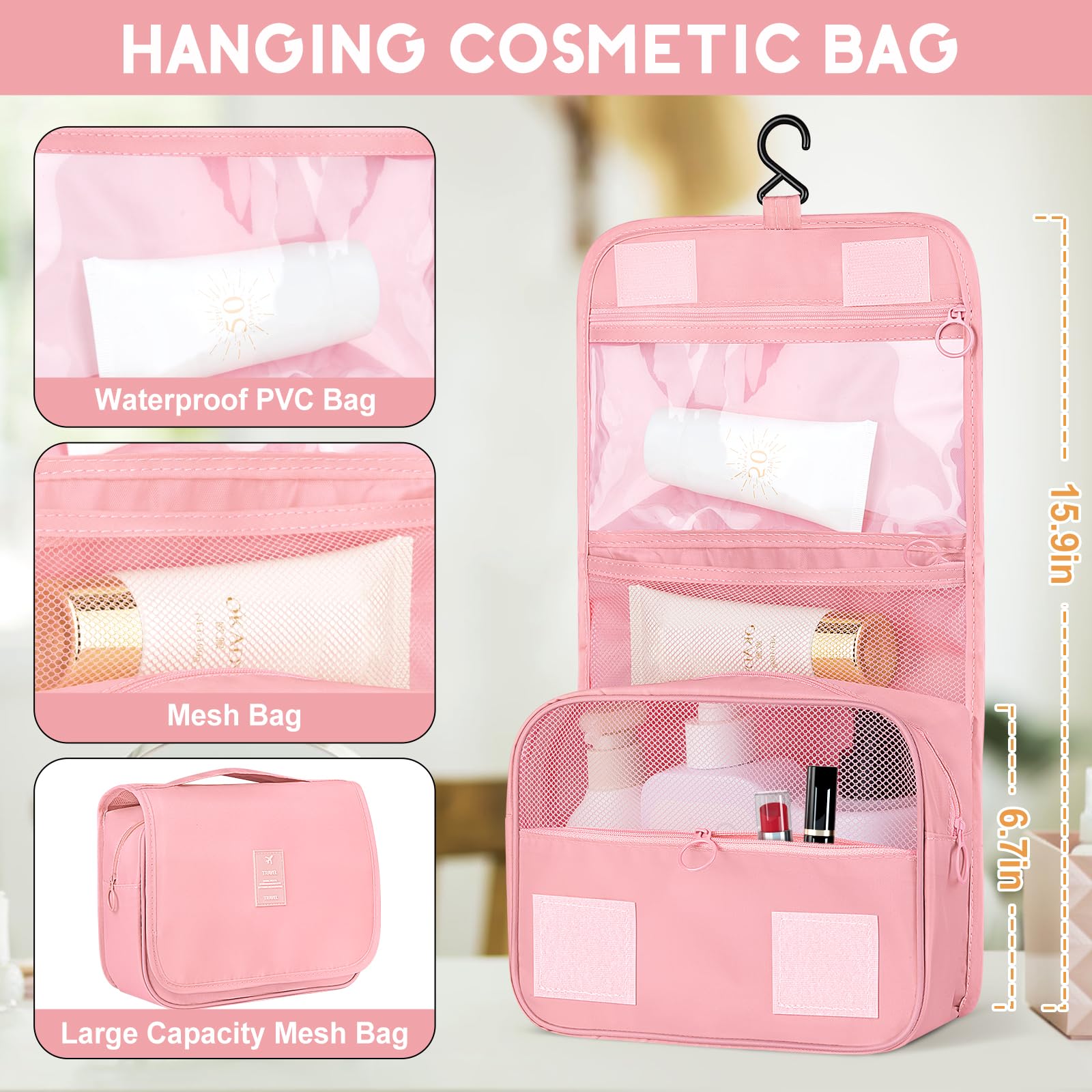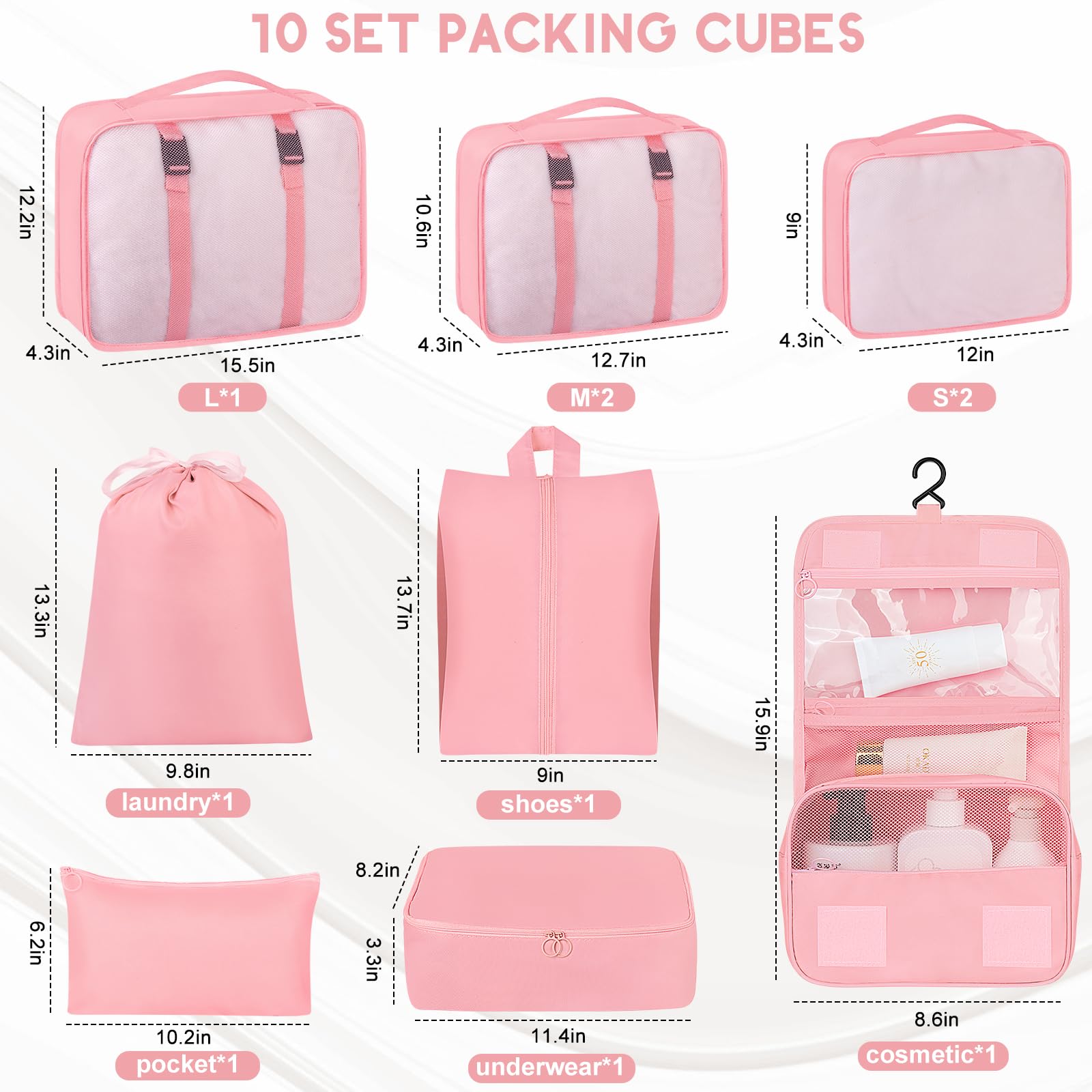 10 Set Packing Cubes for Travel, Travel Packing Cubes with Hanging Toiletry Bag and Shoe Bag, Suitcase Luggage Organizer Bags for Travel Essentials Women Men (Pink)