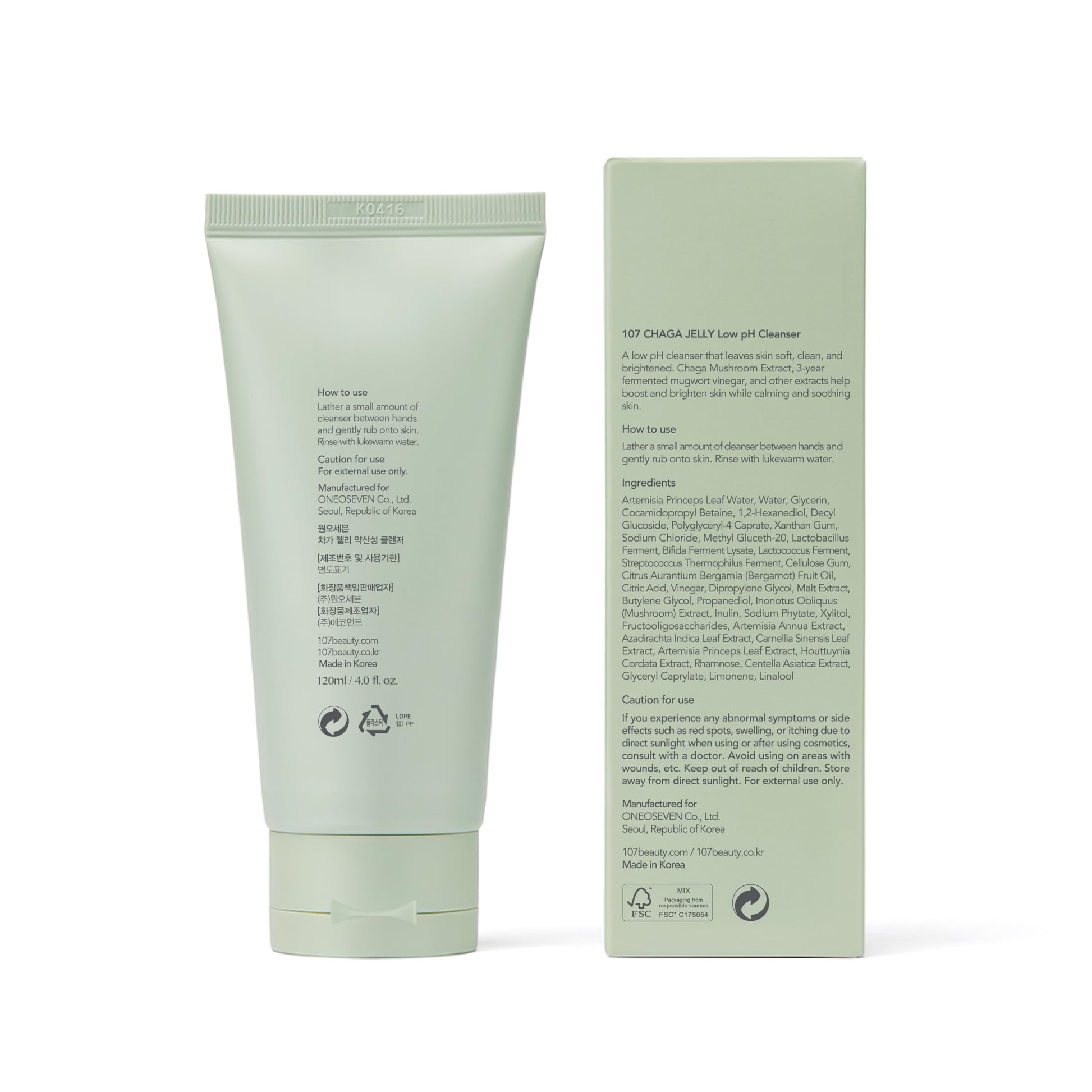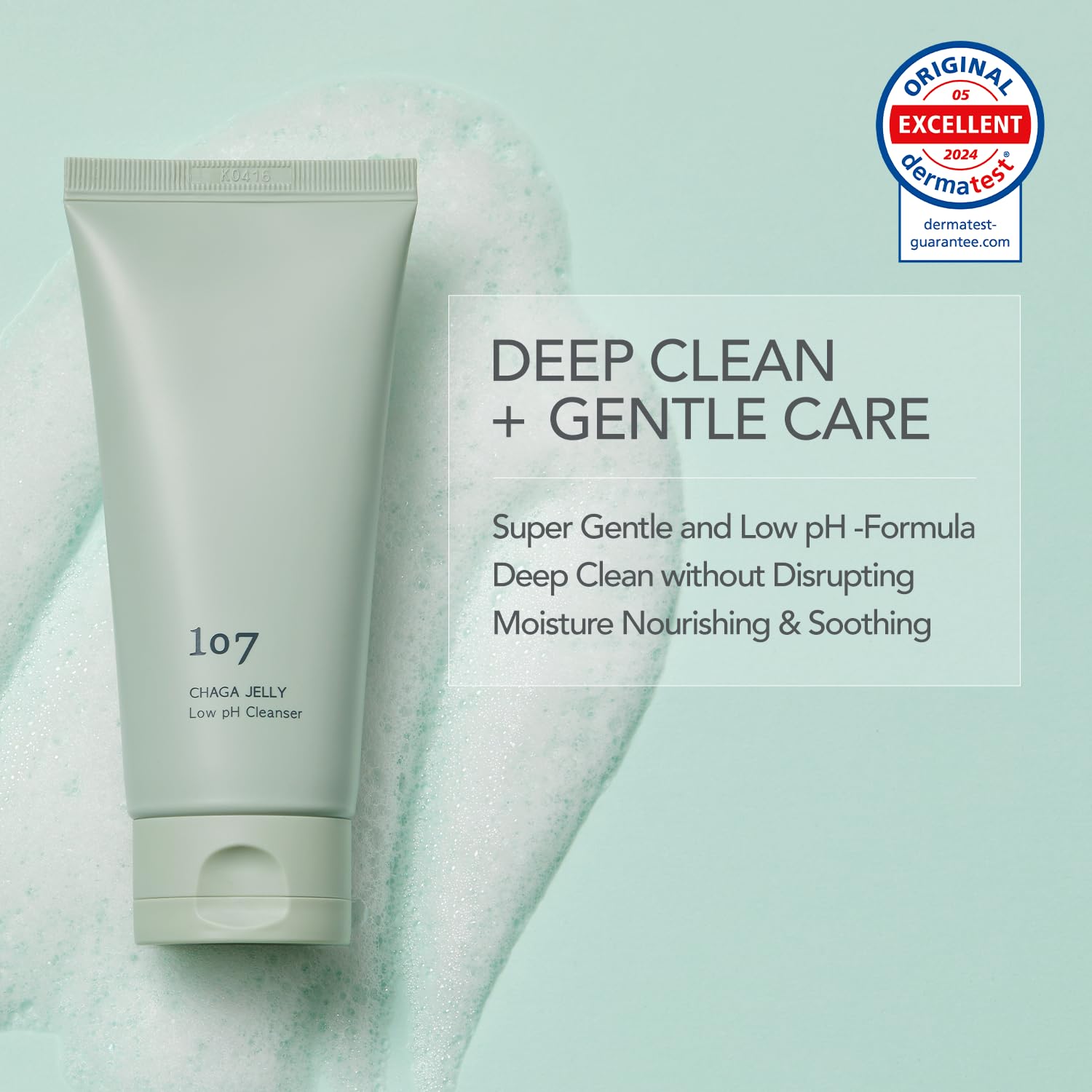 107 Gentle Gel Cleanser, Low pH, Non-Stripping Cleanser for Sensitive Skin, Enriched with Antioxidant & Calming Ingredients, Korean Beauty (4.0 fl oz)
