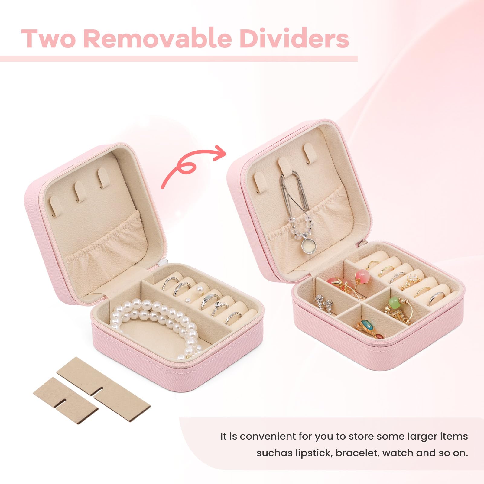 - Lightweight & Portable: The travel jewelry box measures 3.94 x 3.94 x 1.97 inches, which is small and light, easy to carry, and can save and organize your jewelry when you go out or travel. The jewelry travel case looks small and mini, but there is enough space, it can be easily put into a handbag or suitcase, and it is a necessity for daily life and travel.