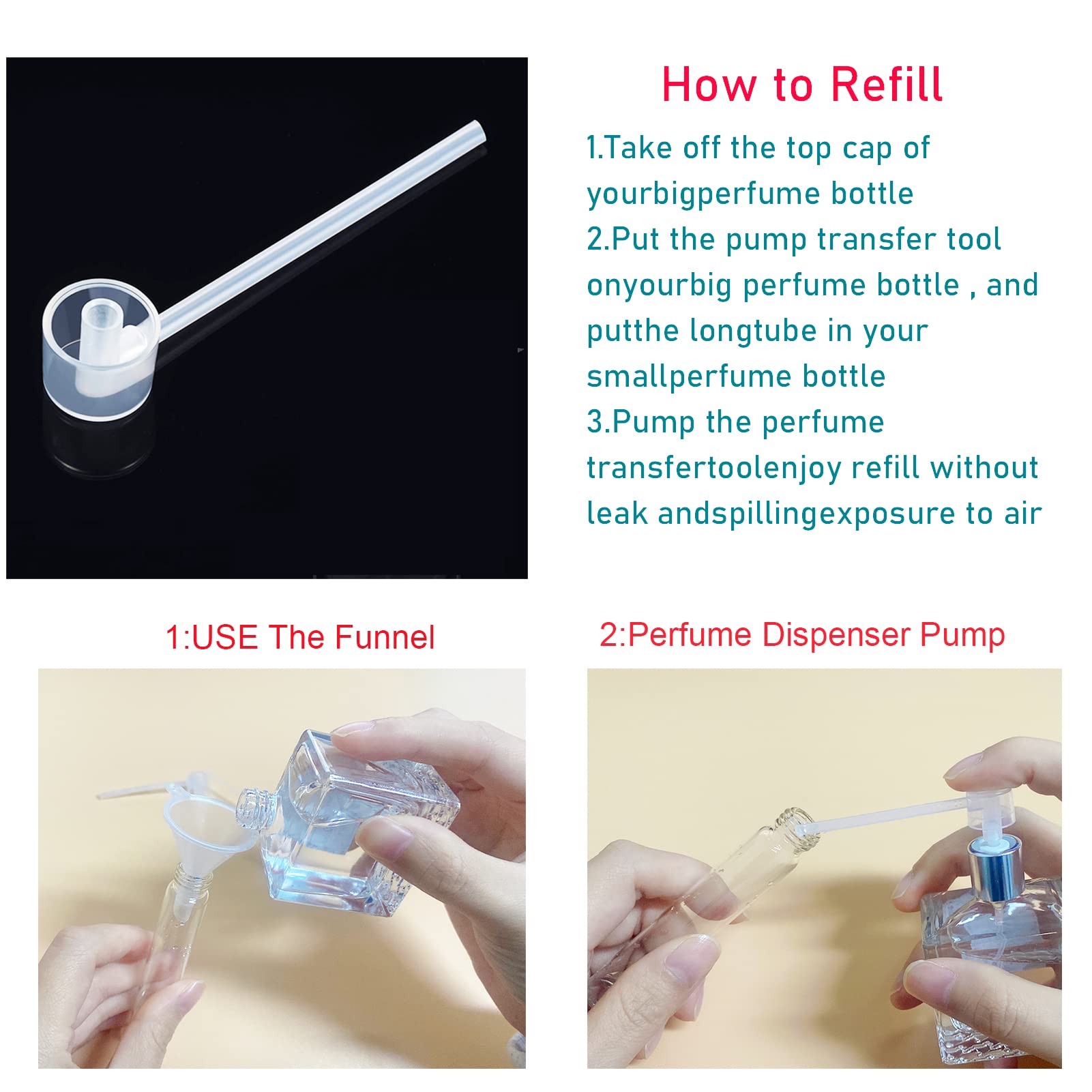 - Mini Size Sprayer,perfume bottle empty small,atomizer bottle refillable,is easy to use, easy to fill, and does not leak.Never risk traveling with your glass perfume bottle again! This perfume atomizer set is safe on the airplane