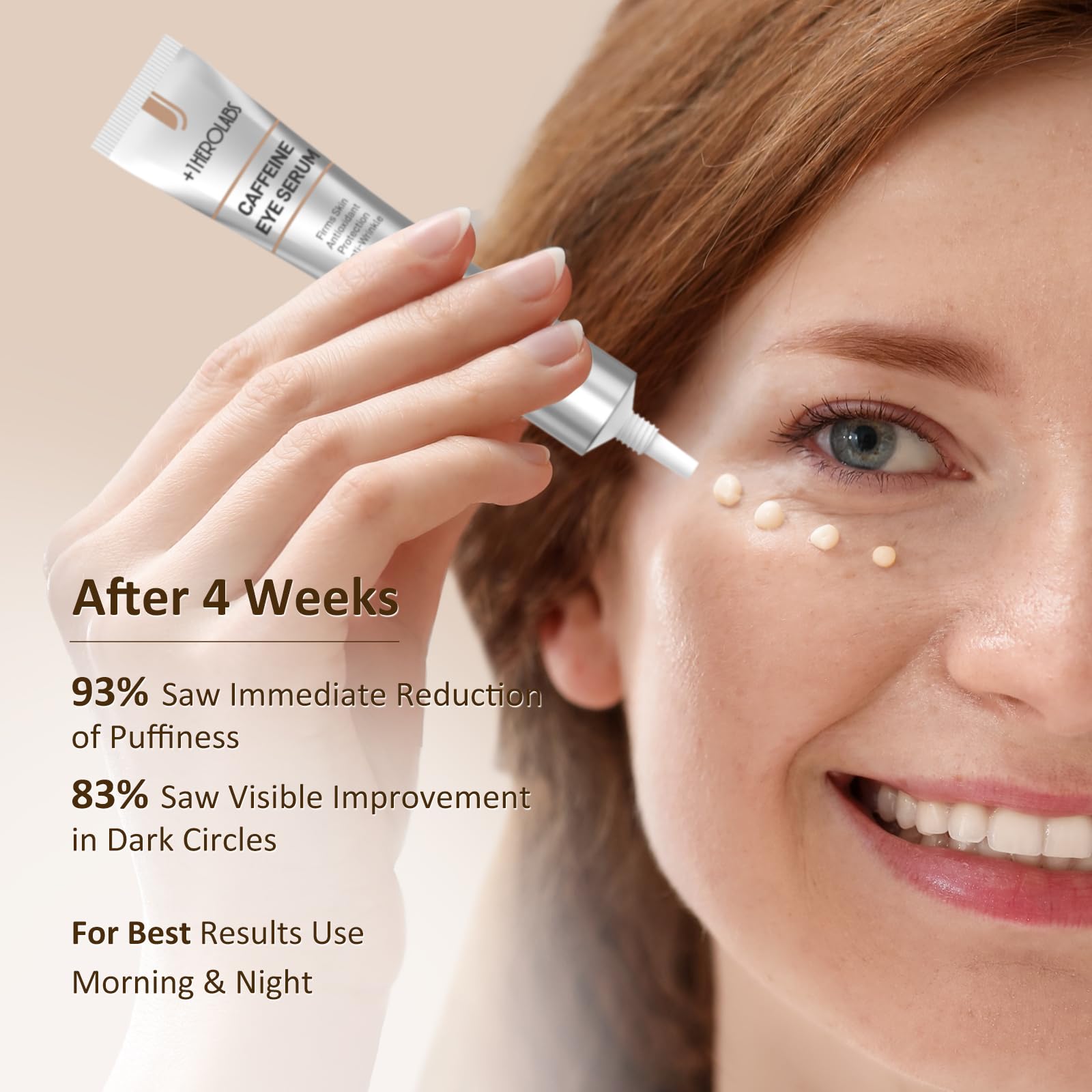 +1HEROLABS Caffeine Eye Cream with Niacinamide, Hyaluronic Acid, Vitamin E & Peptides - Under Eye Serum for Puffiness and Dark Circles, 0.7 Fl Oz (Pack of 1)