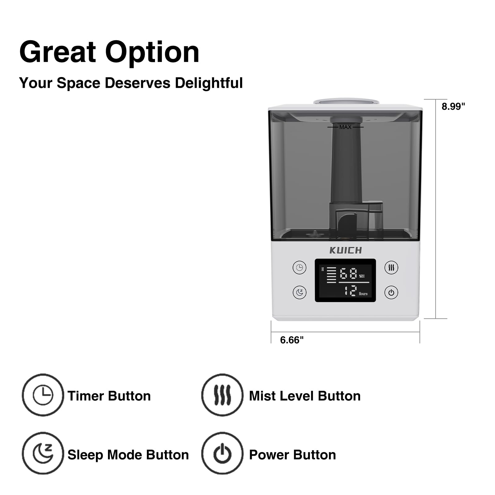 Details: KUICH 2.4L Air Humidifiers for Bedroom Baby - 26dB Quiet Cool Mist Air Humidifier for Nursery & Plants, Top Fill Air Humidifier Lasts Up to 30 Hours, Auto Shut-Off.