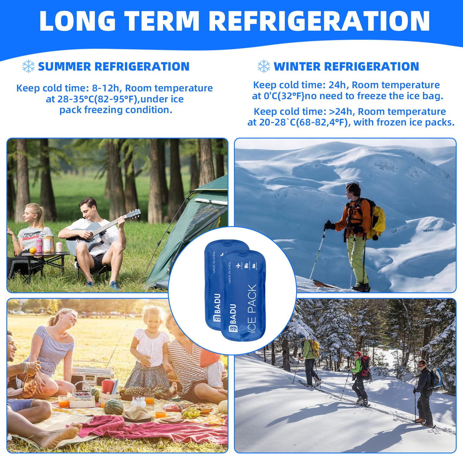Our cooler ice packs are constructed with an abrasion-resistant nylon fabric and PVC material on the outside that resists scratches and breakage, and the PVC material has excellent waterproofing properties that minimize the risk of leakage of liquids, so that the ice packs remain intact, even in harsh travel conditions.