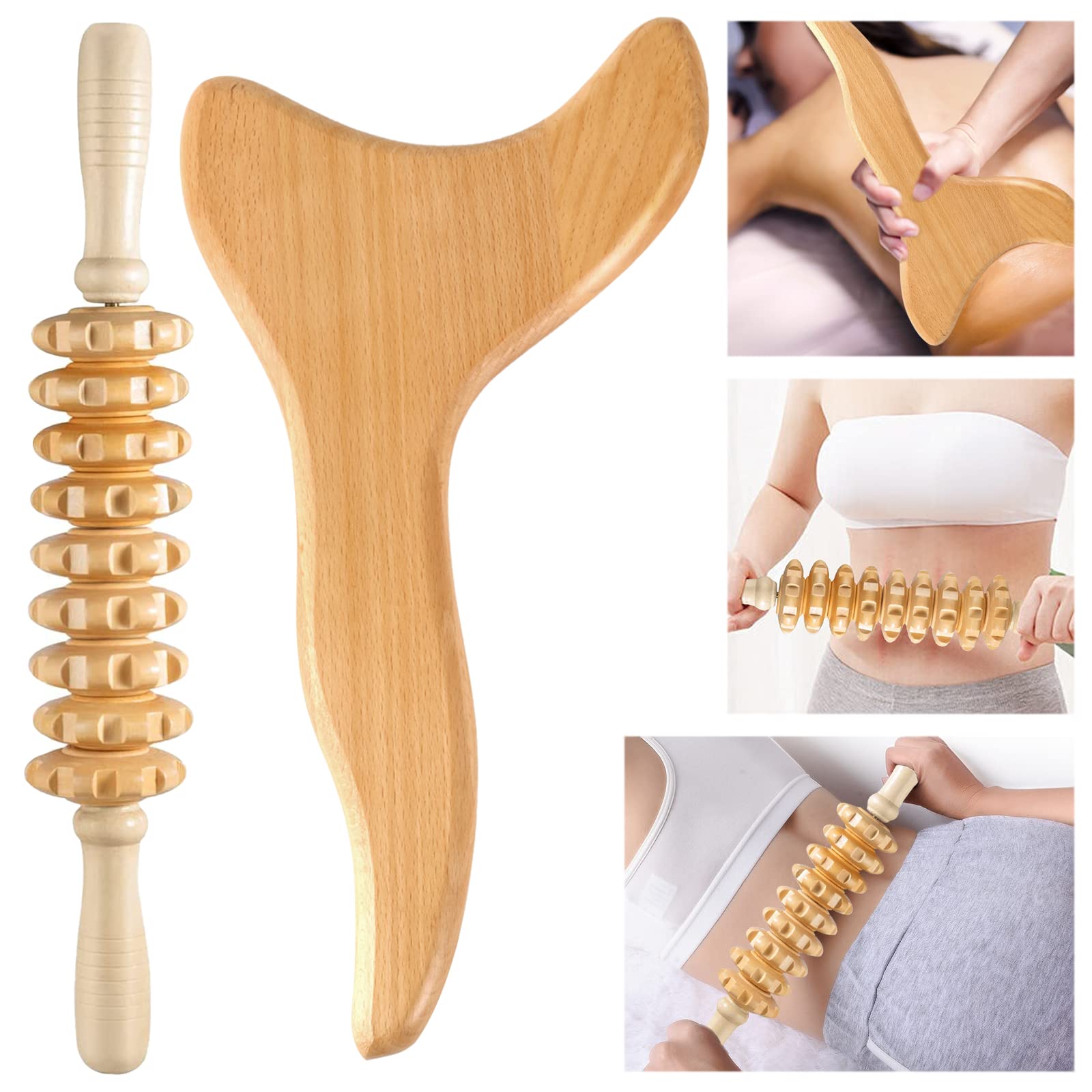 - 2 in 1 Wooden Lymphatic Drainage Tool Kit: Just a few minutes of using our wood massage tool daily for an effective lymphatic massage experience. This wood therapy massage tools kit can help your deep tissue massage, eliminate cellulite and discharge of residual toxins