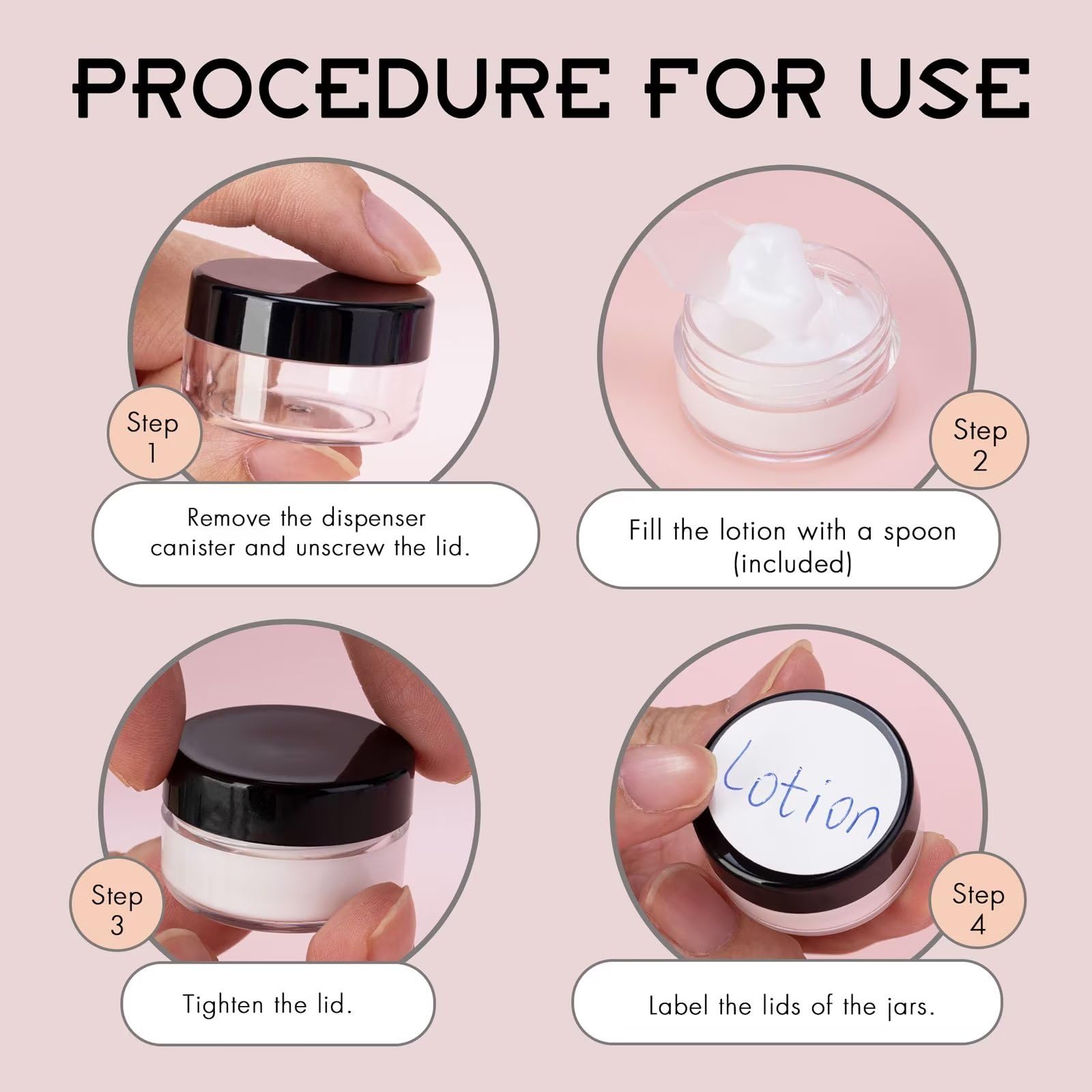 - [LEAK-PROOF & SEALED] Each makeup sample jar has a spiral mouth and the lids are serrated design, easy to tighten and sealed without leaking. You can put it in your pocket or backpack without worrying leak!