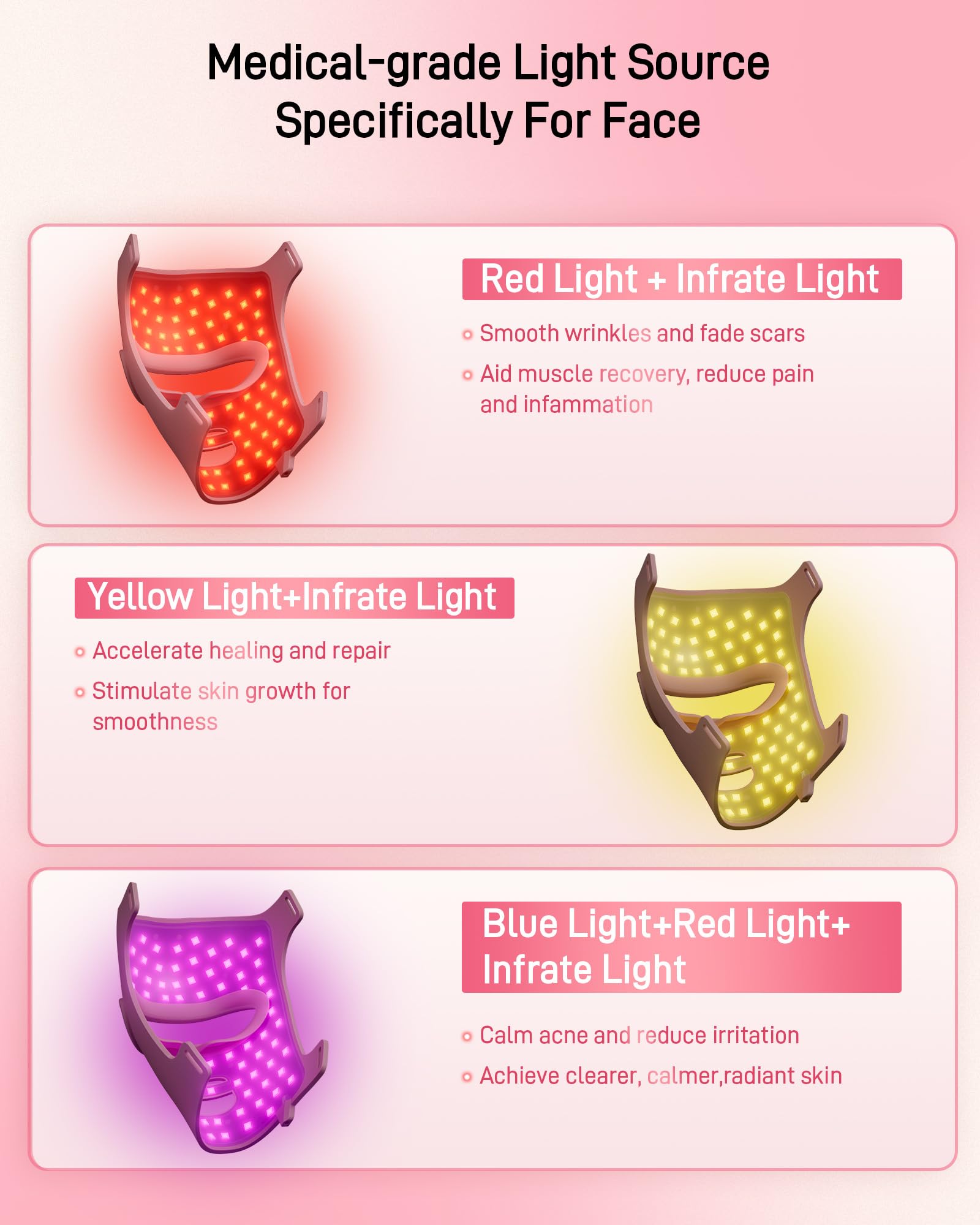 - Skin-Friendly, Soft and Convenient: Our led mask light therapy is lightweight yet sturdy, featuring dual-strap system, made with soft, premium silicone that is gentle and non-irritating, suitable for all skin types. Unique one-piece design fits perfectly on the face, providing even and focused light therapy. Specially designed eye mask to protect your eyes from straining your eyes.