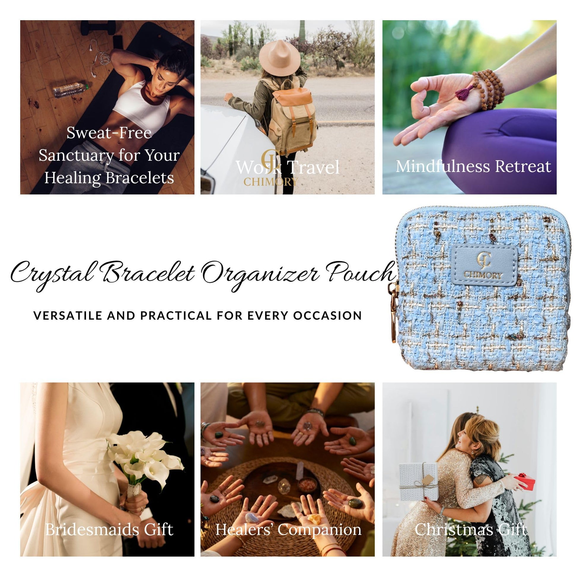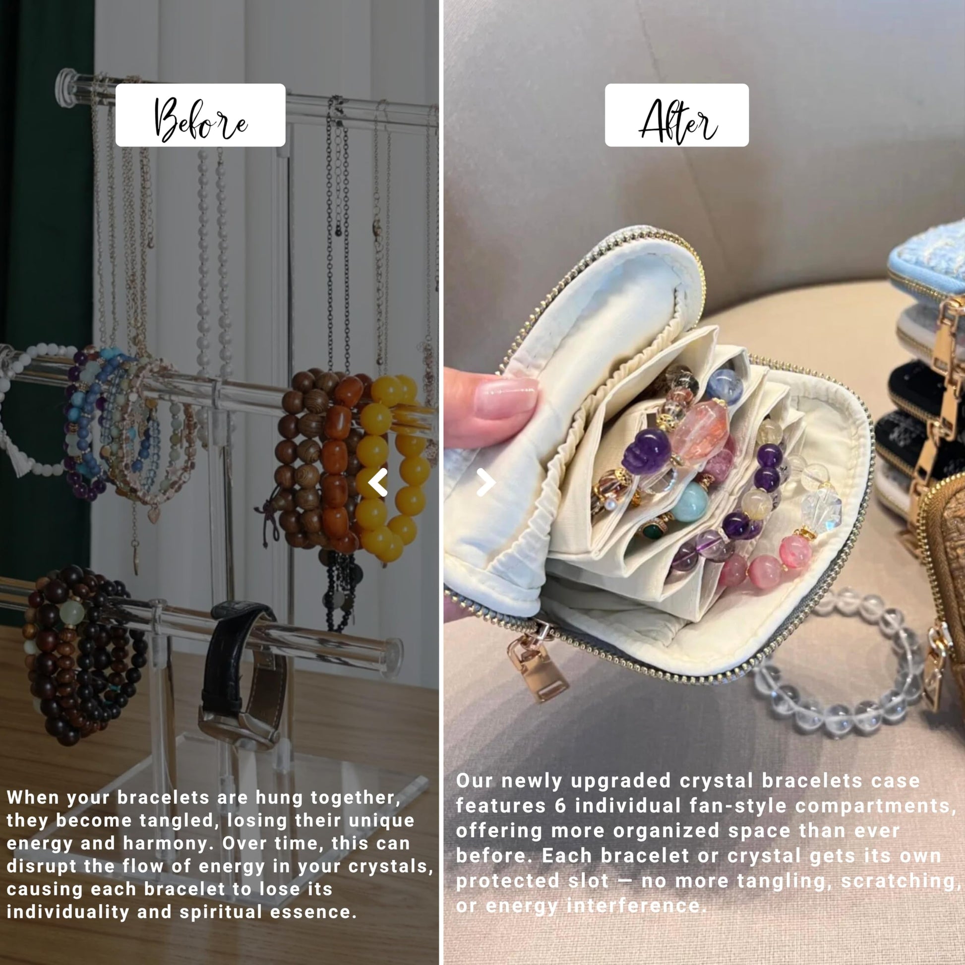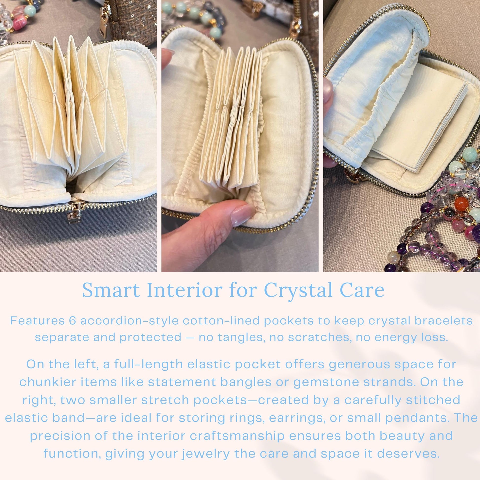 - Compact and Convenient for Travel - Dimension: 4.7" L x 4.7" W x 1.2" H; Weight: 0.12lbs / 58g. This travel jewelry pouch with six padded crystal bracelet compartments, two spacious side pockets, and a layer for rings and earrings, every item has a sacred space. Designed to keep your spiritual jewelry safe, organized, and energetically aligned, no more tangles, chips, or scratches.