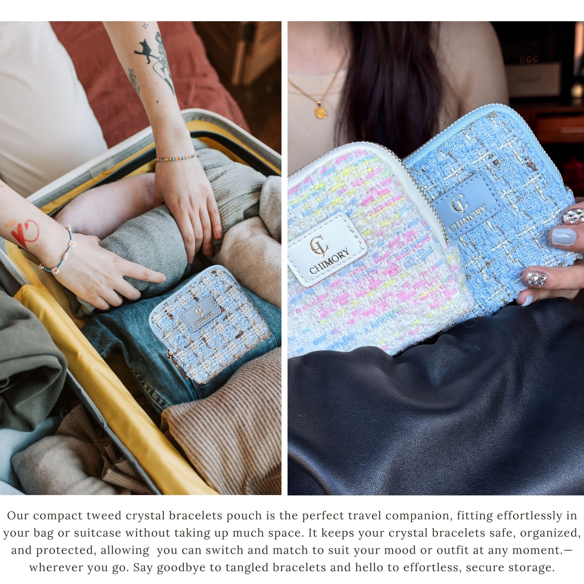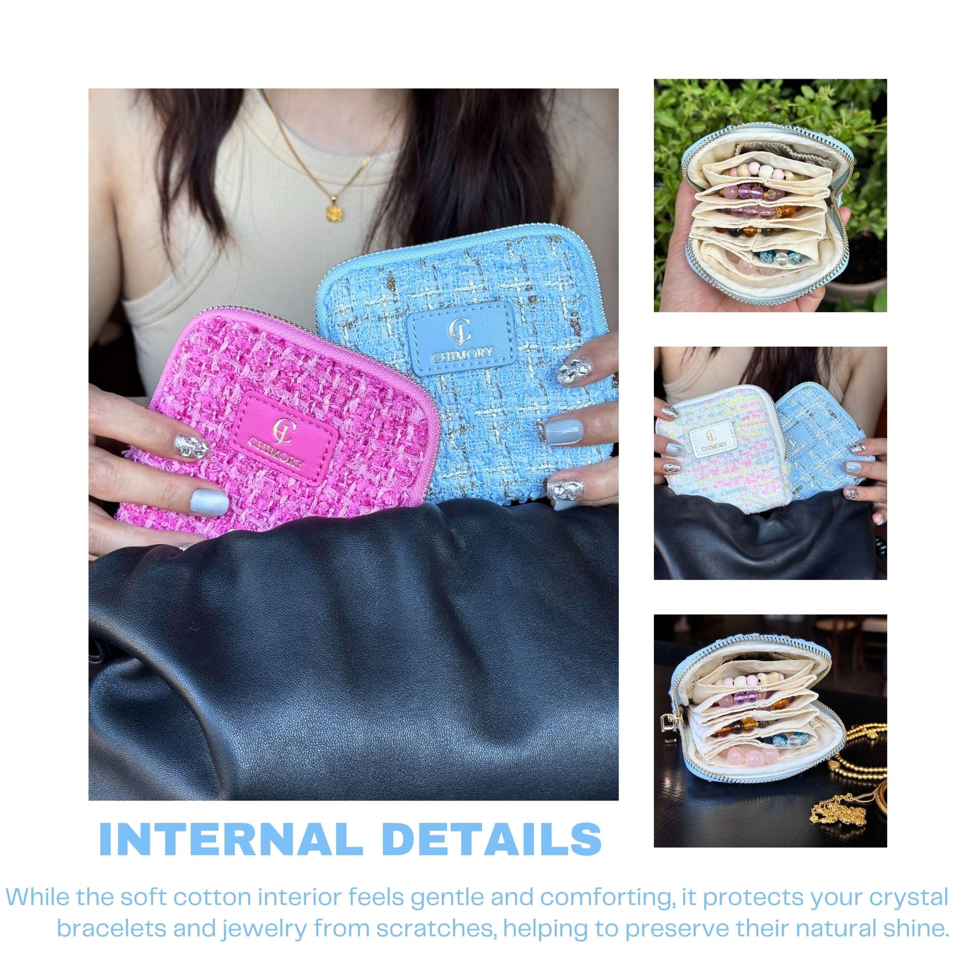 - Upgraded to Premium Tweed Fabric – Inspired by couture and crafted for crystal lovers, CHIMORY’s upgraded jewelry case brings together high fashion and functional elegance. This material is soft yet structured, giving your jewelry a home that feels luxurious and secure, premium tweed fabric,the textured finish offers a unique, high-end look that complements any travel wardrobe.