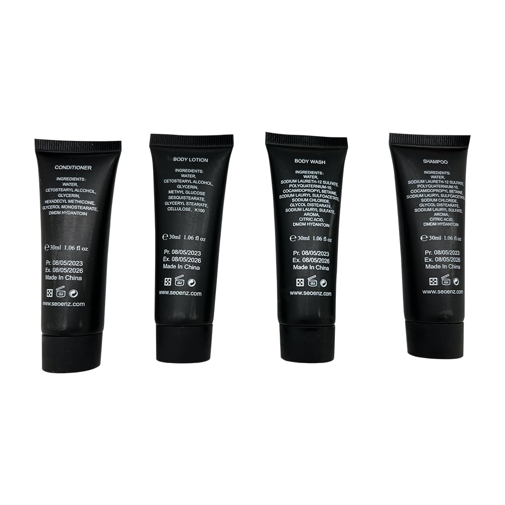 - QUALITY; Each kit mini body wash, shampoo and toiletries has undergone stringent quality inspection and hours of development with leading personal care experts; The shampoo and conditioner travel size sets are crafted to the highest standards; The Made By Seoenz promise is this; if we wouldn’t use these hotel soap bars and other items ourselves, we won’t sell them