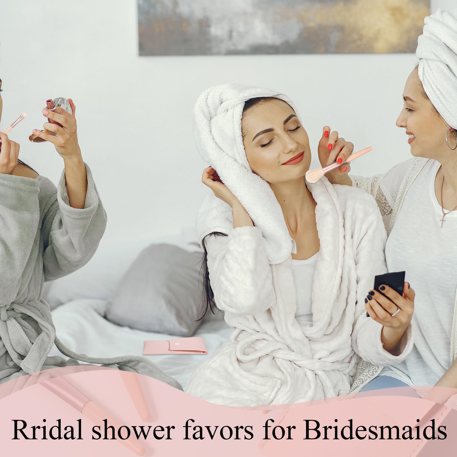24Sets Travel Makeup Brush Set, Mini Makeup Brushes, Face Bulk Make up Brushes Angled Blush Brush for Women Girls Wedding Gift(Powder Pink)