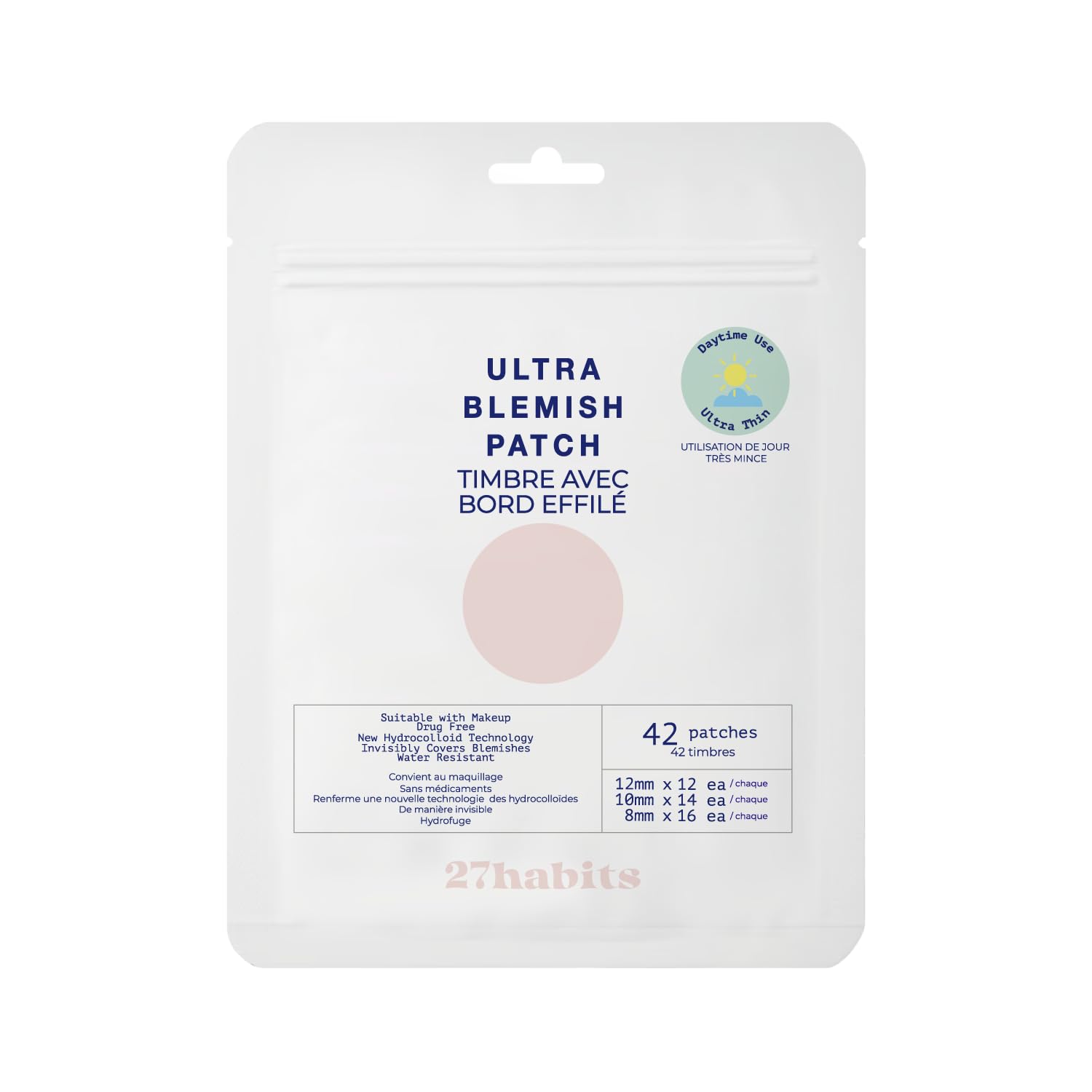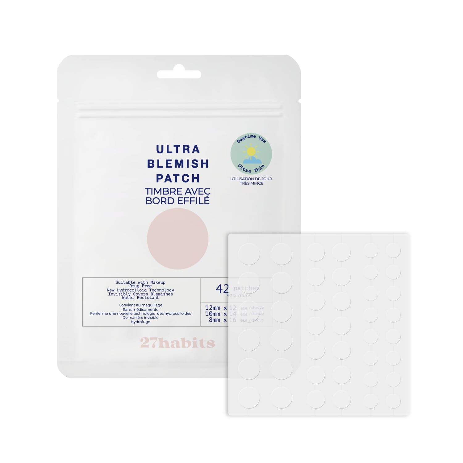 27habits ULTRA BLEMISH PATCH DAYTIME USE (42 patches) - Ultra-thin, Invisible, Hydrocolloid, Protects and Covers Blemishes, Eco-Friendly Packaging and Cruelty Free, Korean skincare