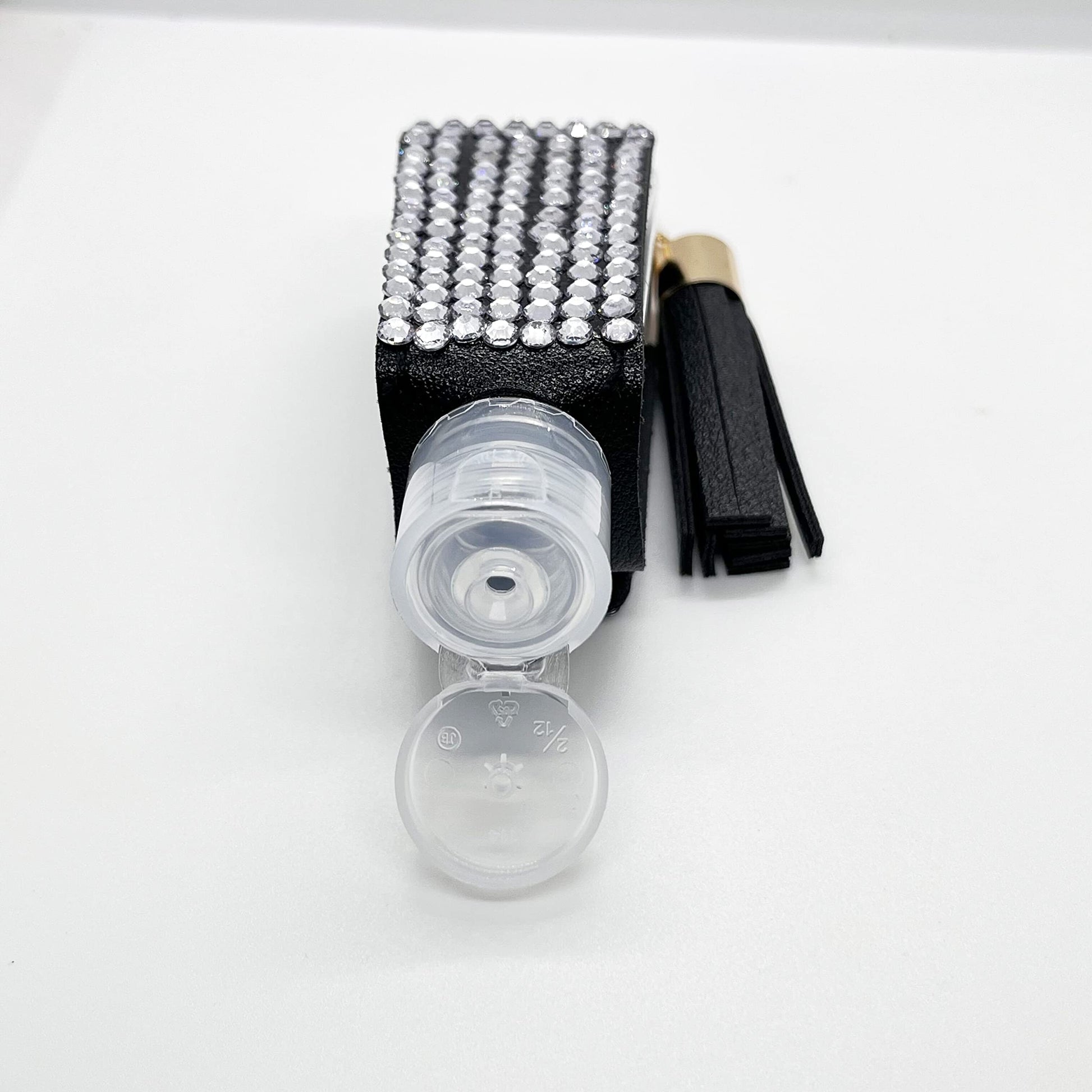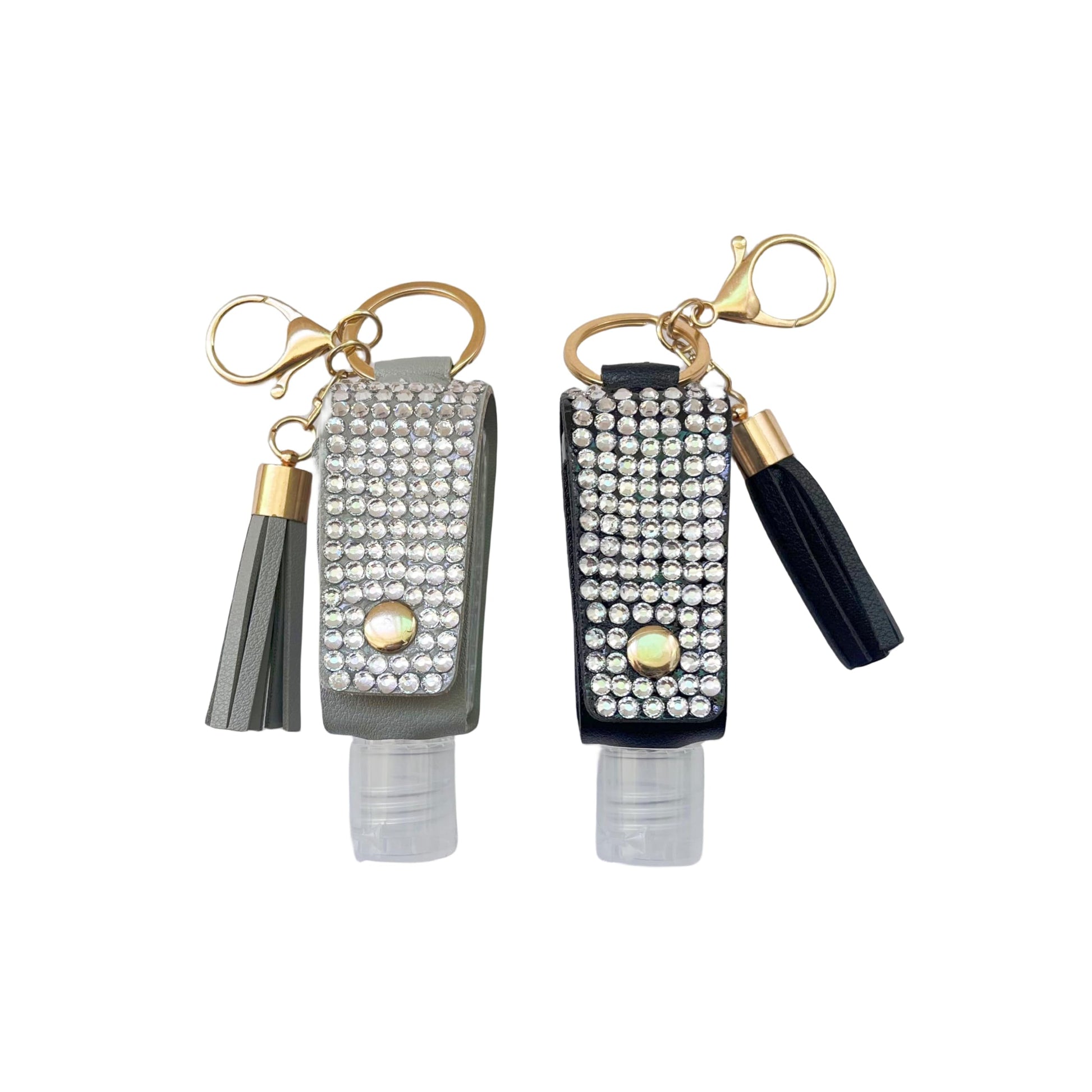2pcs/1oz Bling Travel Bottle Case with Keychain,Mini Travel Bottles for Alcohol,Toner, Hand Sanitizer,Small Refillable Containers Portable for Handbag, Purse,Outdoor Camping Traveling (Black And Grey)
