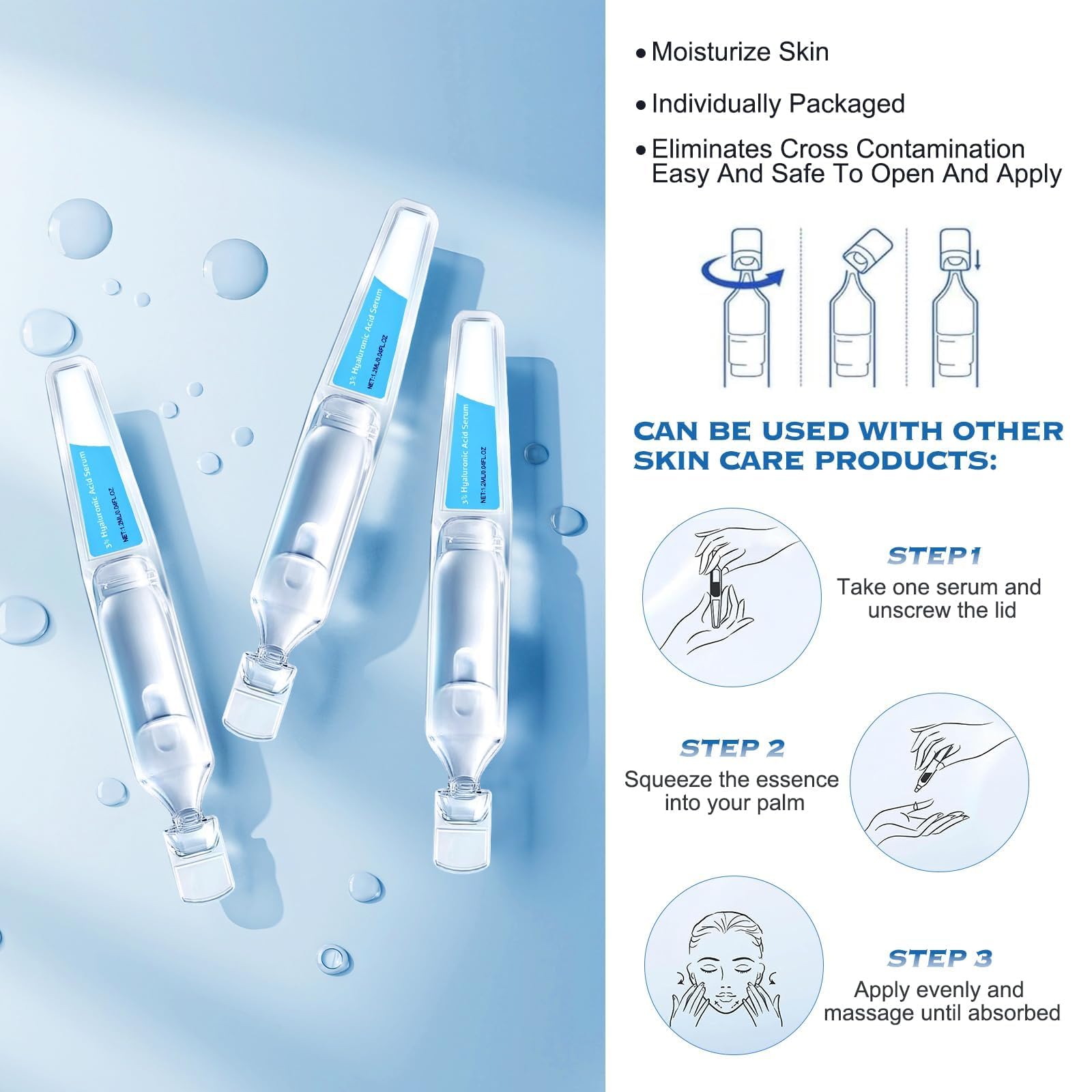 3% Hyaluronic Acid Serum Ultra-Hydrating Vials, Hyaluronic Acid Tubes, Hydrating Face Serum for Women Anti Aging (1.2ml * 60pcs)
