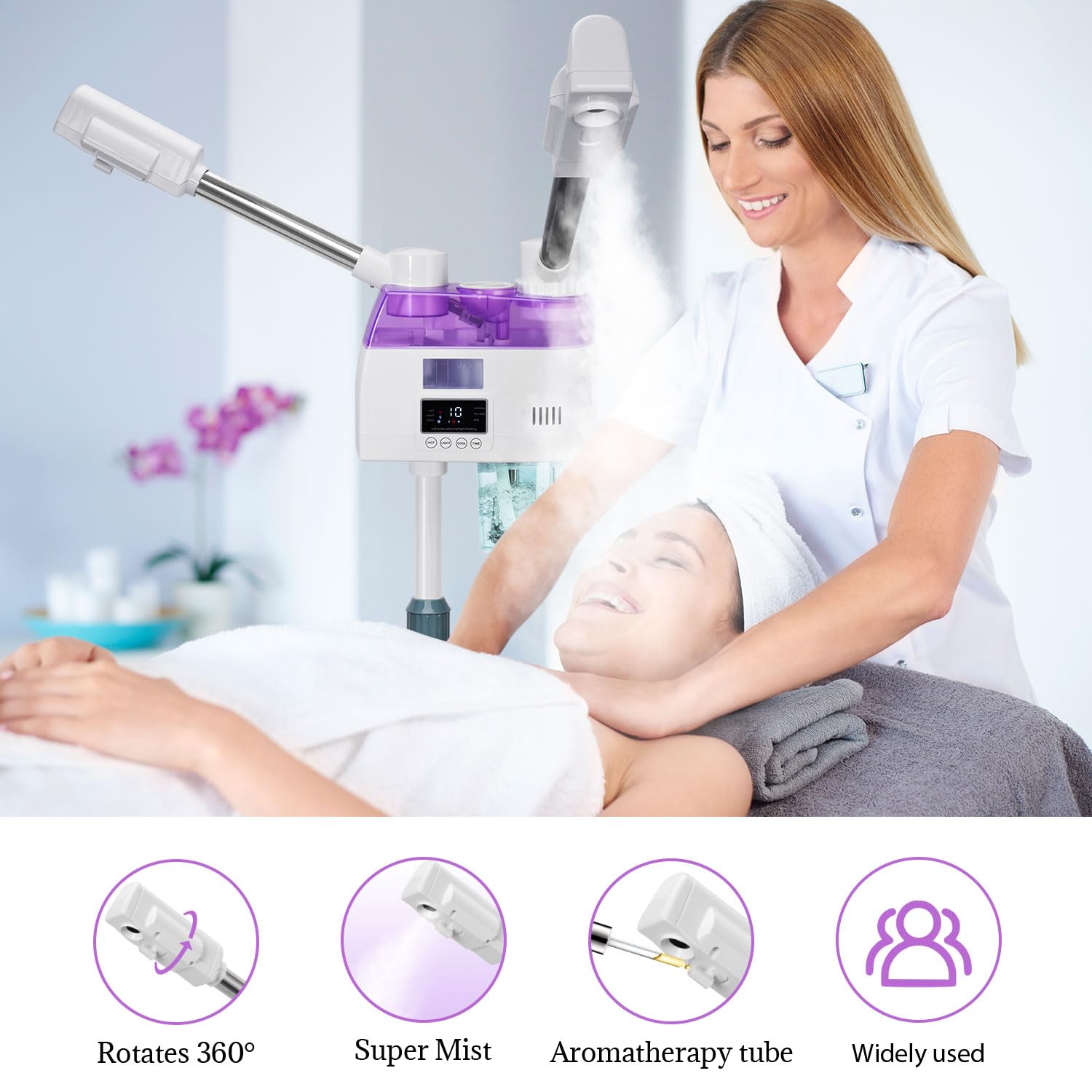 - 【Professional 3 in 1 Facial Steamer】Esthetician facial steamer with 5X magnifying lamp, Features double nozzles design, this facial professional steamer is designed specifically for people with different skin types.