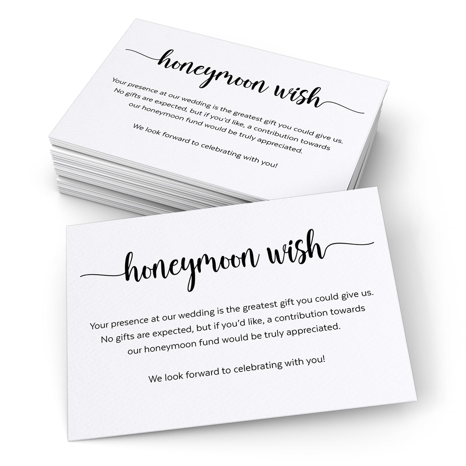- PREMIUM CARDS: (50) bright white, 3.5 x 5 inch honeymoon fund wish cards made with thick, heavy 14pt (140lb/300gsm) card stock.