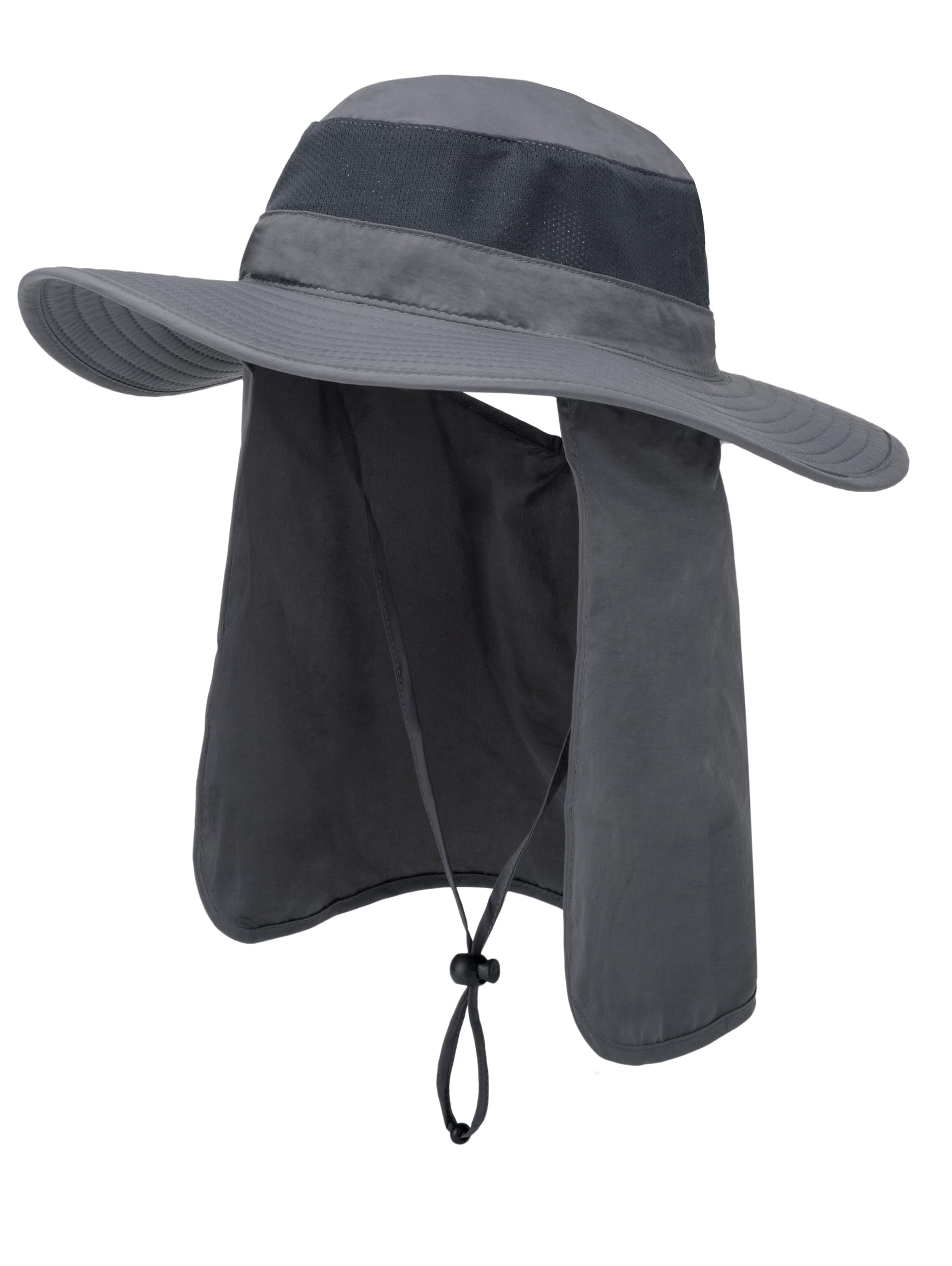 360° Protection Bucket Hat with Detachable Face Mask & Neck Cape - UPF 50+ Sun Hat, Breathable Mesh for Outdoor Dark Grey