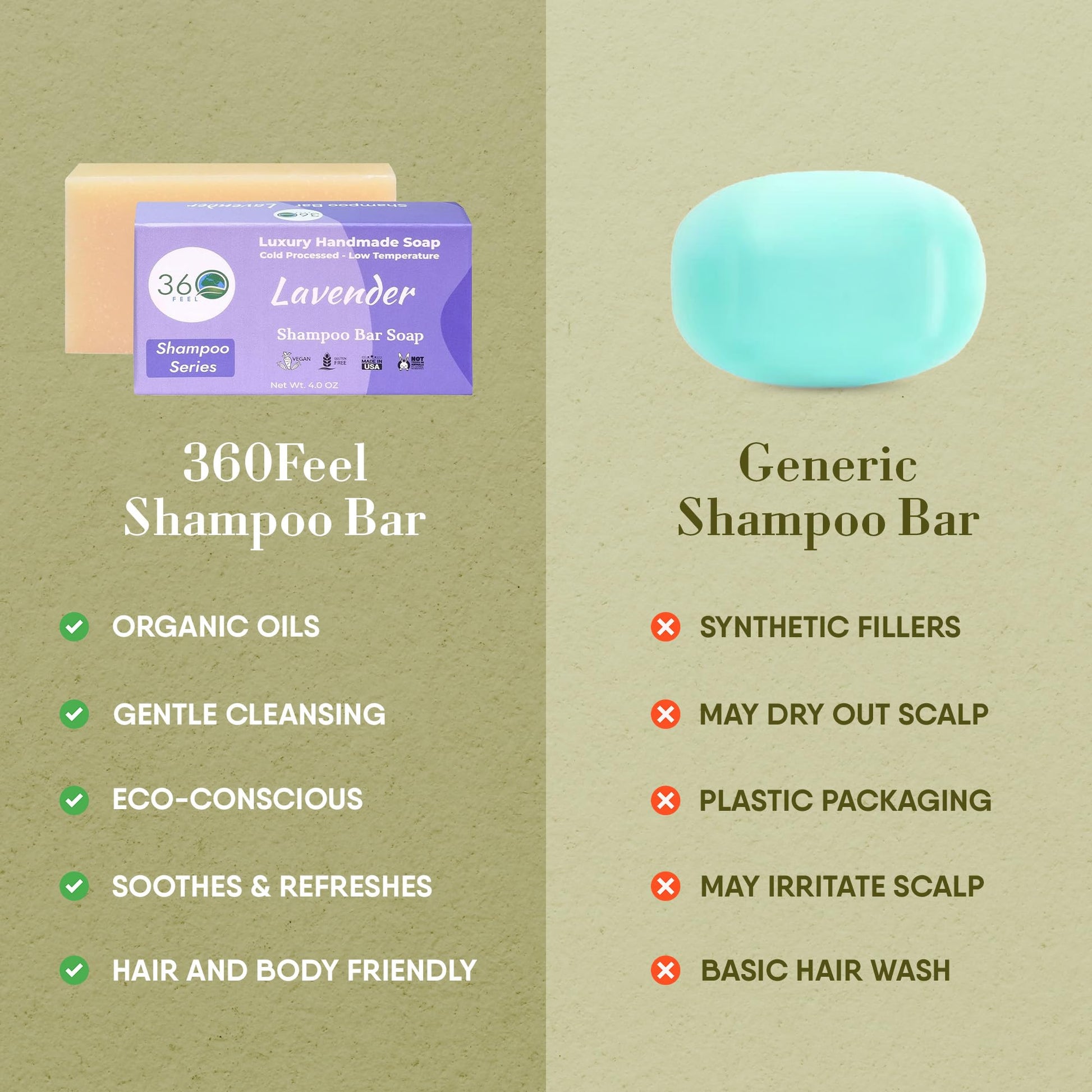 360Feel Lavender Shampoo Bar - Nourishing and Moisturizing Anti-Dandruff Shampoo Bar - Handmade with Essential Oils - Travel Friendly and Compact - Zero Harsh Additives - 3.5 Ounce