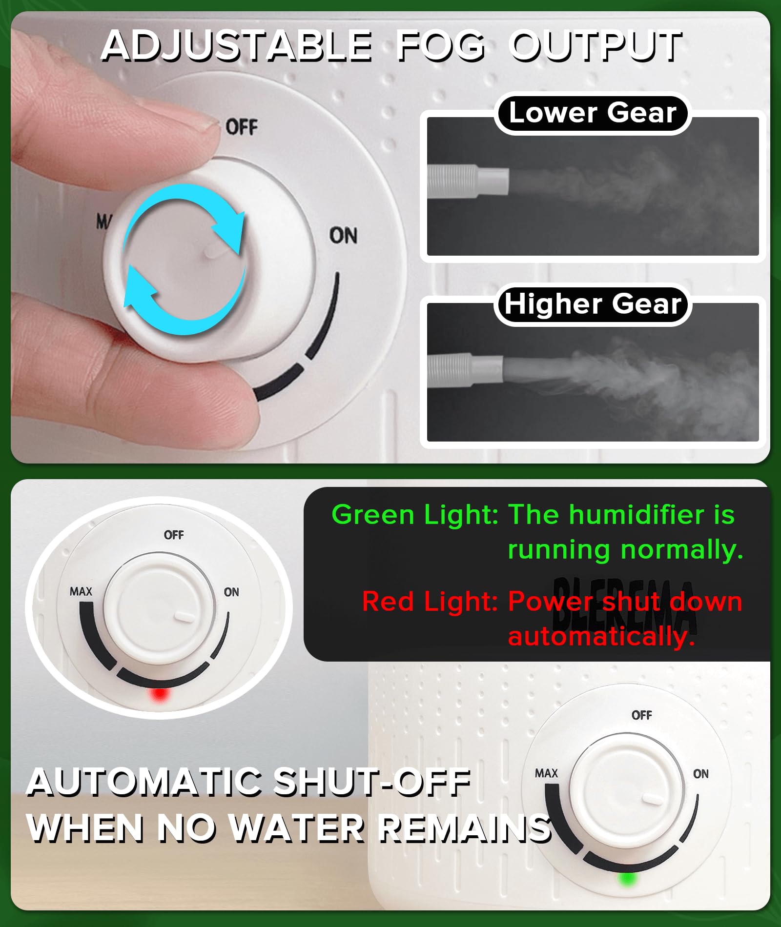 - 【Sigle/Dual Mist Output Options】 This plant humidifier is designed with the flexibility to connect either one or two hoses, allowing you to choose between a single mist output or dual mist output, according to your specific needs.
