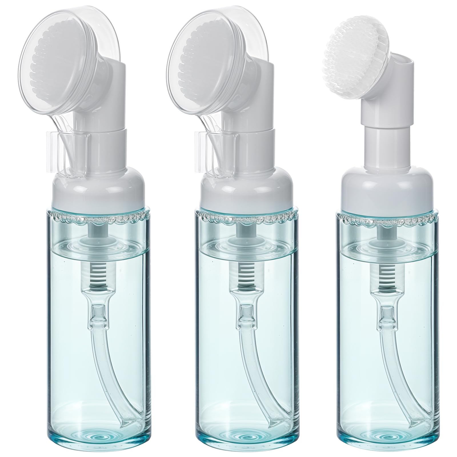 3Pcs 2oz Empty Facial Cleanser Foaming Bottle Mousse Foam Gel Head Wash Brush Foam Bottle Pressure Type Cleansing Milk Beater Mini Foaming Soap Pump Dispenser for Travel Hand Soap Lash Clean Shampoo