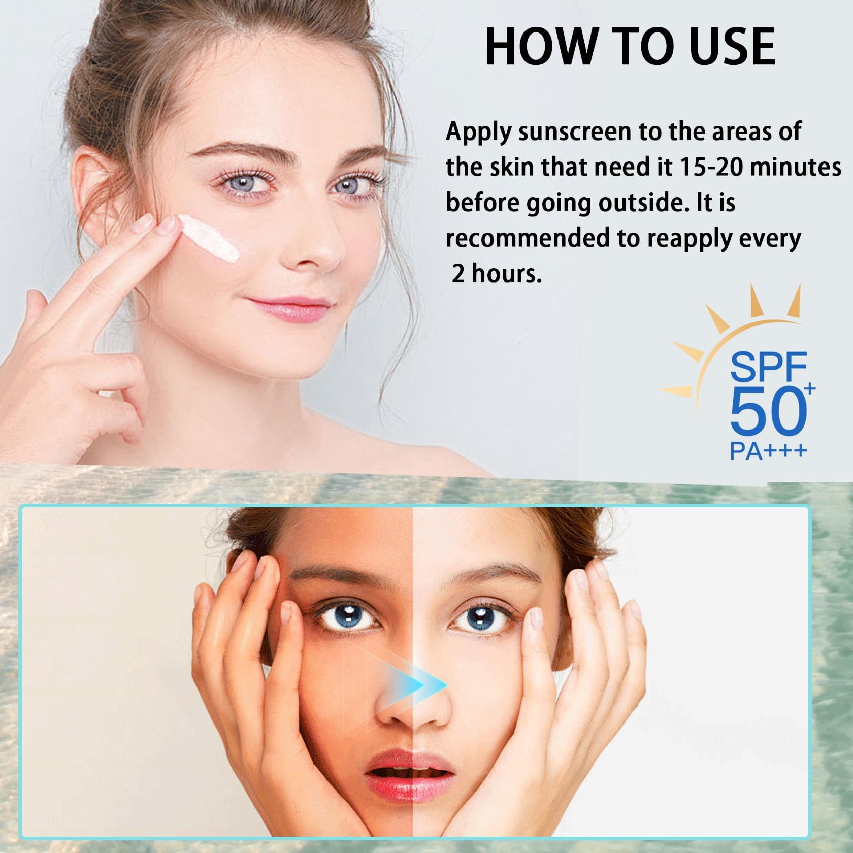- Strong Sun Ccontrol: Sunscreen's SPF 50 keeps UV rays away, so you don't have to worry about UV rays, and you can go outside and enjoy the summer fun
