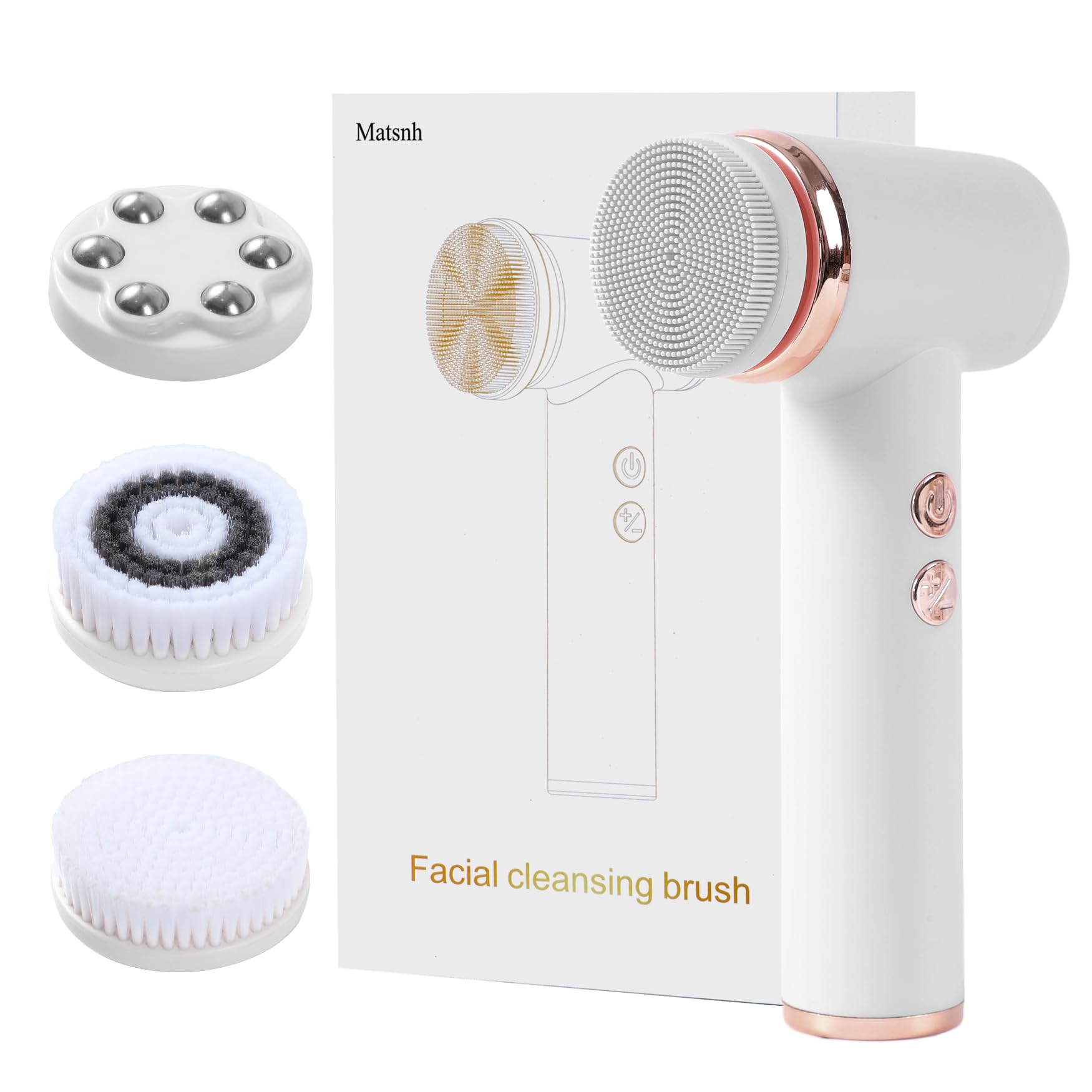 4 in 1 Facial Cleansing Brush, Multi Function Electrical Face Wash, Brush IPX6 Waterproof Portable Face Scrubber, 5 Speed Adjustable, 2 Rotation Directions Adjustable, Gift for Women Men (White)