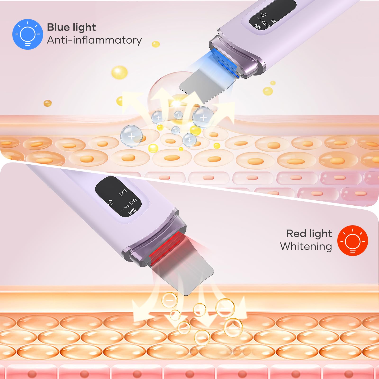 4 in1 Facial Skincare Scrubber,Skin Scrubber Face Spatula - Blackhead Remover with 4 Modes, Pore Extractor Face Spatula Deep Cleansing for Facial Skincare LCD Display, IPX7 Waterproof-Purple
