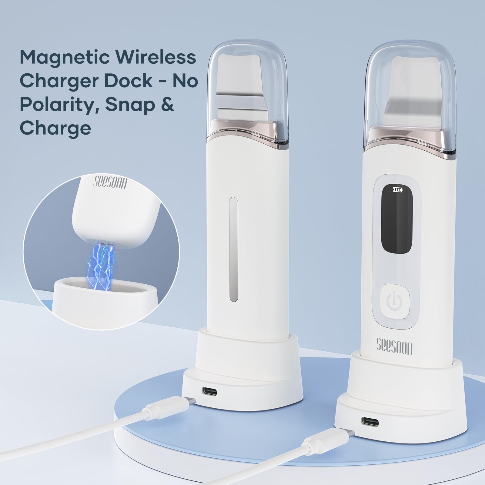 - Long-Lasting Battery &Perfect Gift: skin tag remover tool Equipped with a high-capacity battery for extended use, this lightweight blackhead removal tool (140g) is perfect for travel or daily use. Magnetic wireless charger dock - No Polarity ,Snap&Charge.Give the gift of youth and beauty for any holiday.SEESOON provides the best experience for our followers. Comes with an English manual and 12-month warranty—contact us anytime for support!