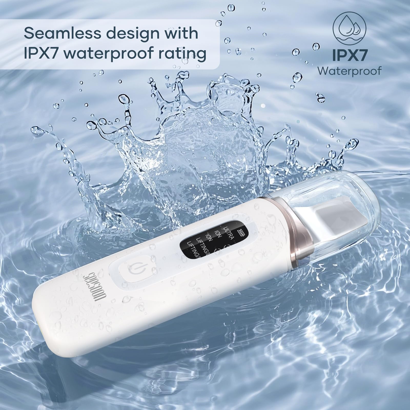 - One-Touch Operation & LCD Display: Easily power on the blackhead remover tools by holding the button for 3 seconds, then face scrubber exfoliator's switch between 4 modes with a single touch. The skin scrubber face's spatula LCD display shows real-time battery level and mode settings, offering flexibility and convenience.