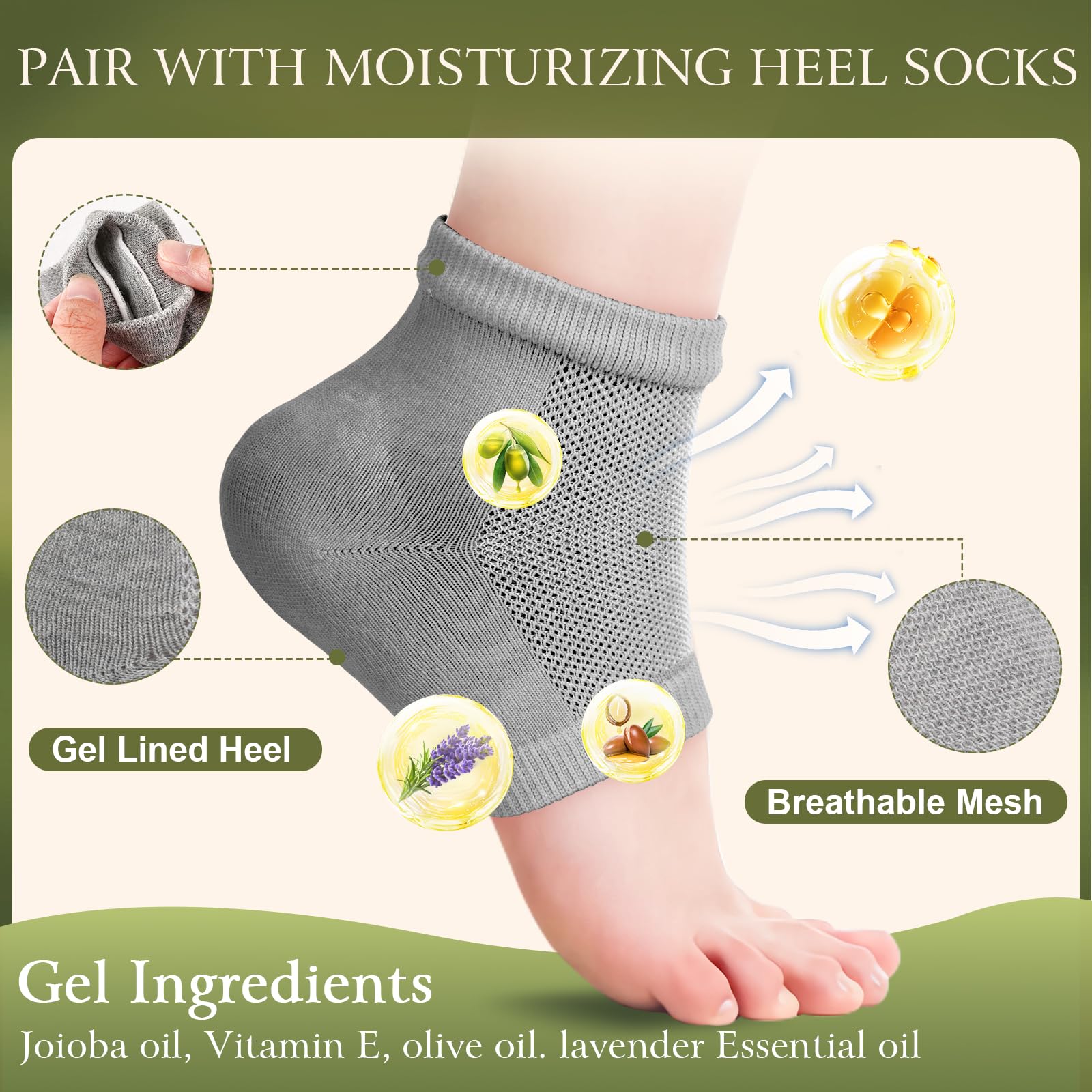 - 【ENHANCED RESULTS WITH HEEL SOCKS】Includes 2 breathable, stretchy heel socks to lock in moisture and boost absorption. Wear overnight or during the day for spa-like treatment: the socks protect your feet while the balms work to restore softness, making this set a complete solution for cracked heel relief.