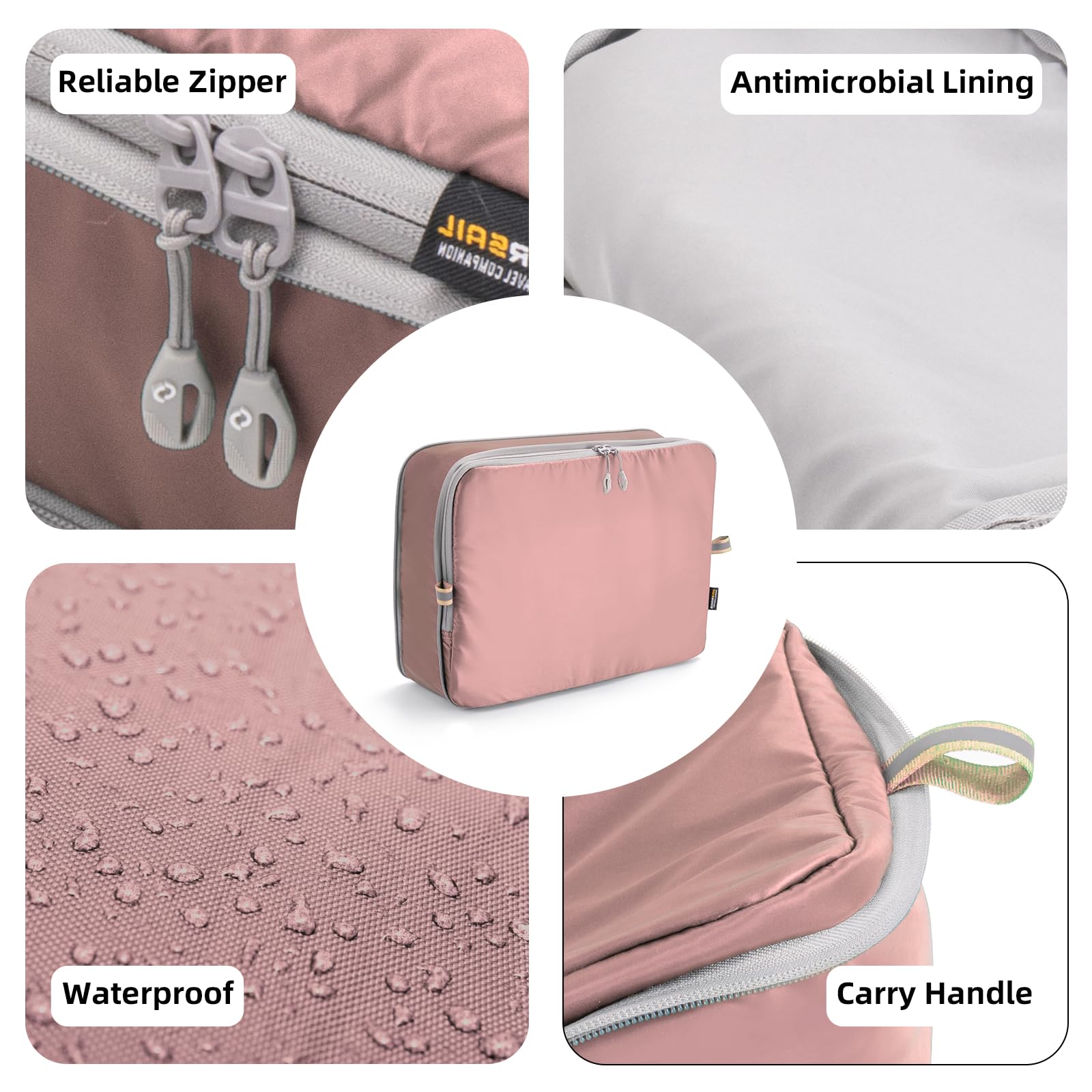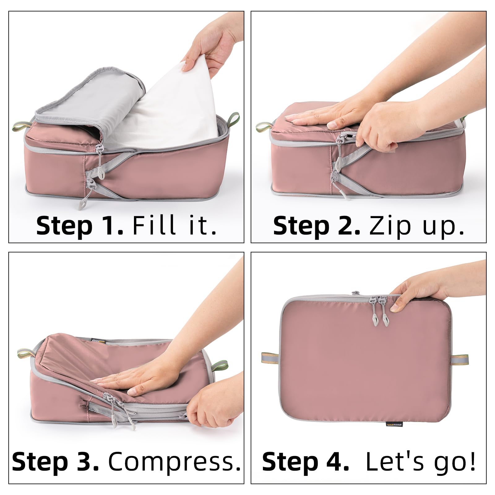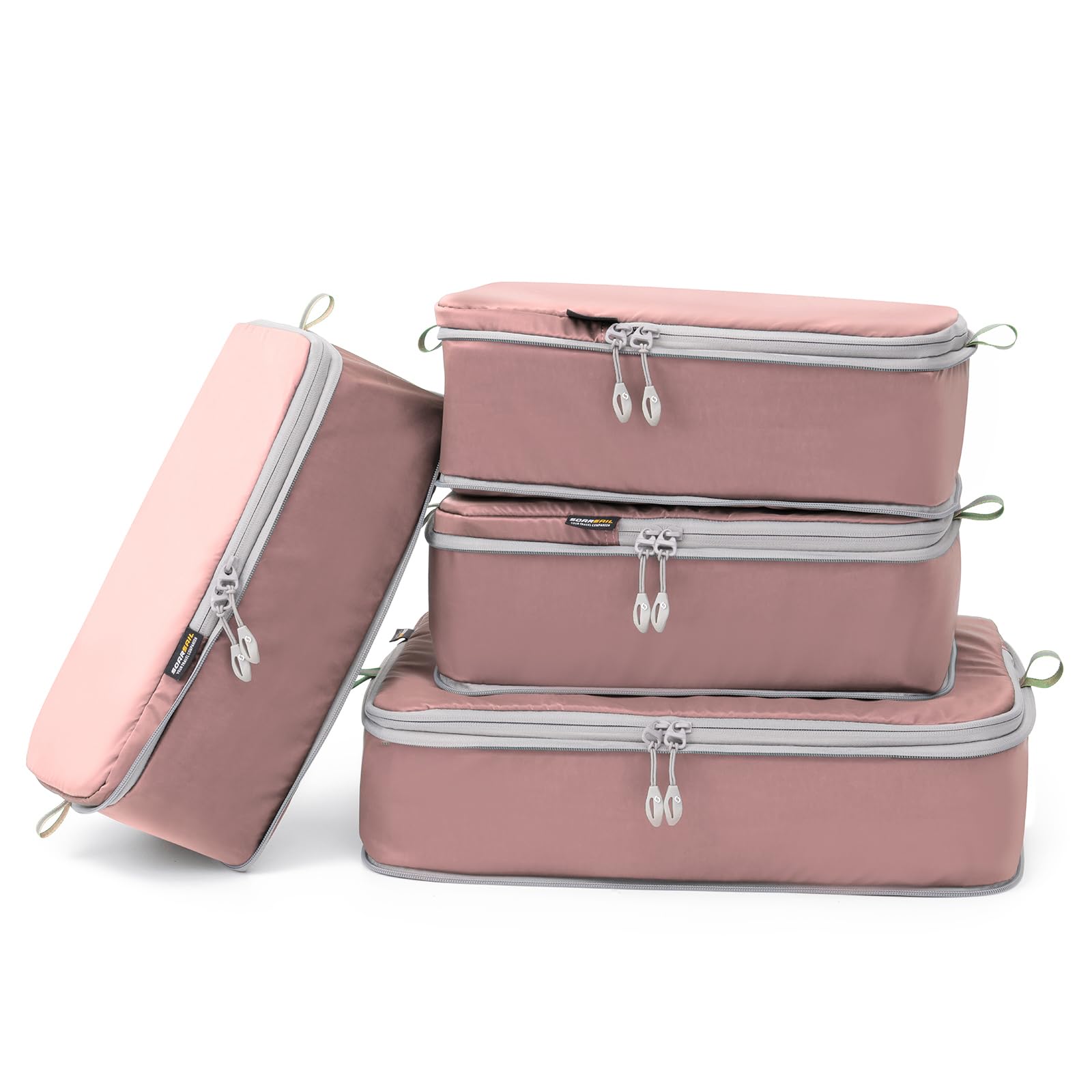 4 Set Compression Packing Cubes, Carry On Suitcase Luggage Travel Organizers (Light Pink)