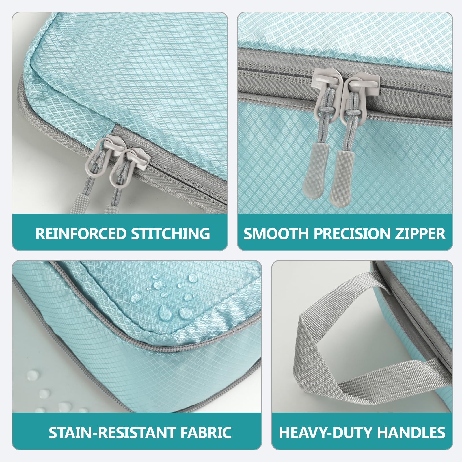 - 【50% Space-Saving Compression】: Double-Layer Compression Technology in these Compression Packing Cubes saves 50% luggage space—perfect for Packing Cubes for Travel or moving! Fit more clothes without bulk, just press and zip these Suitcase Organizer Bags for ultra-compact storage