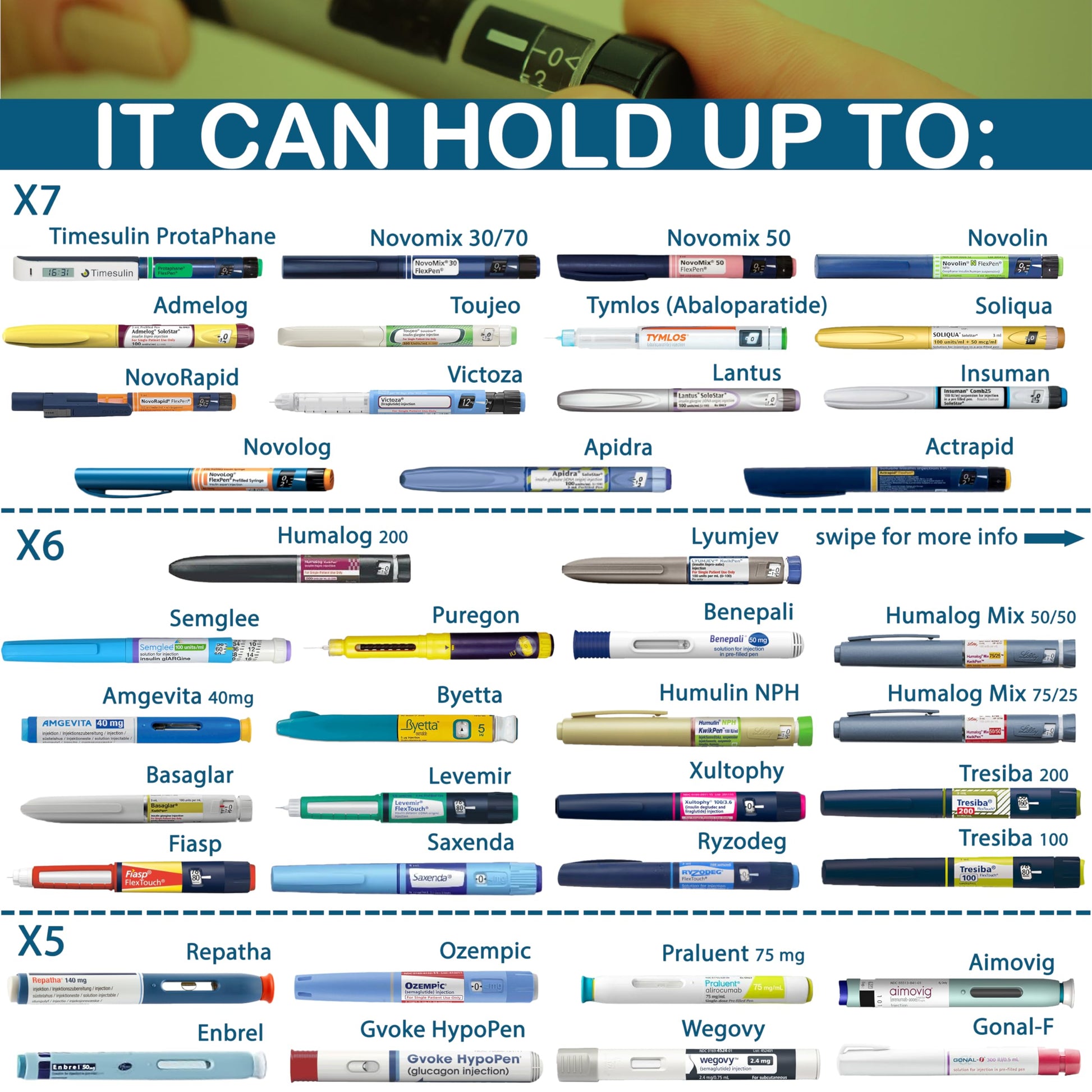 - EASY TO USE, READY WHEN YOU ARE: Freeze for 6–8 hours, activate with warm water, insert meds, and go; intuitive setup with no wires or batteries needed; a must have refrigerated medicine travel case for those who rely on temperature-sensitive essentials.🛑 PLEASE CAREFULLY CHECK IMAGES TO MAKE SURE THE MEDICATION YOU ARE USING IS INCLUDED IN THE LISTING. 🛑 IF THE MEDICATION YOU ARE USING IS NOT IN THE LISTING, PLEASE REFER TO THE FREE SPACE TO DETERMINE CAPACITY OR KINDLY ASK SUPPORT TEAM.