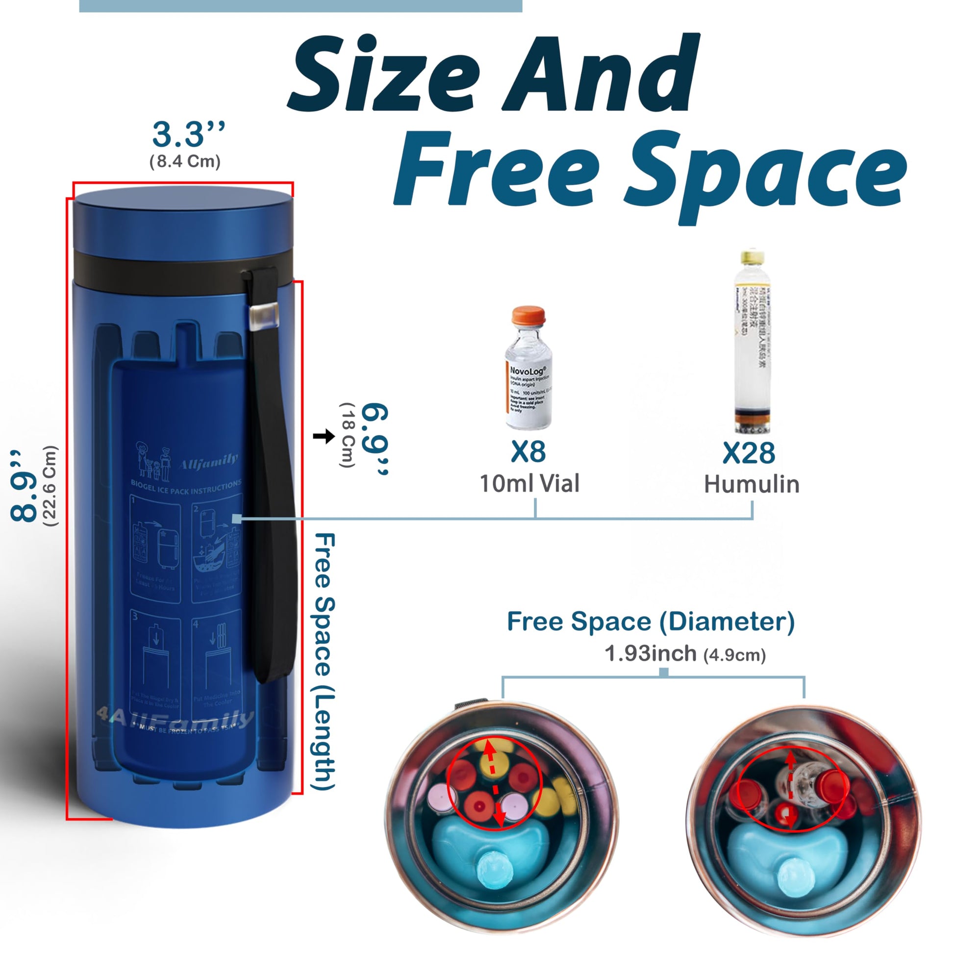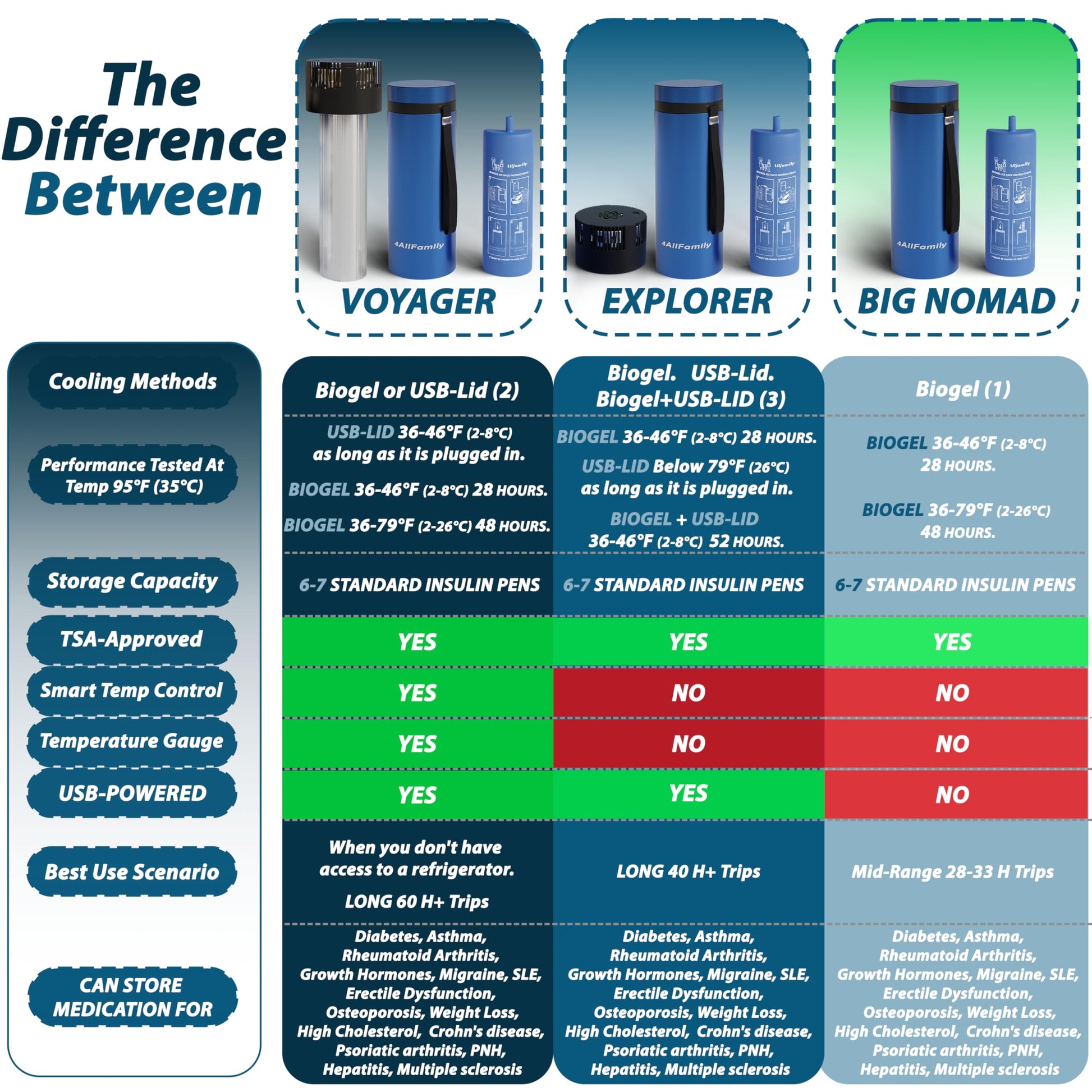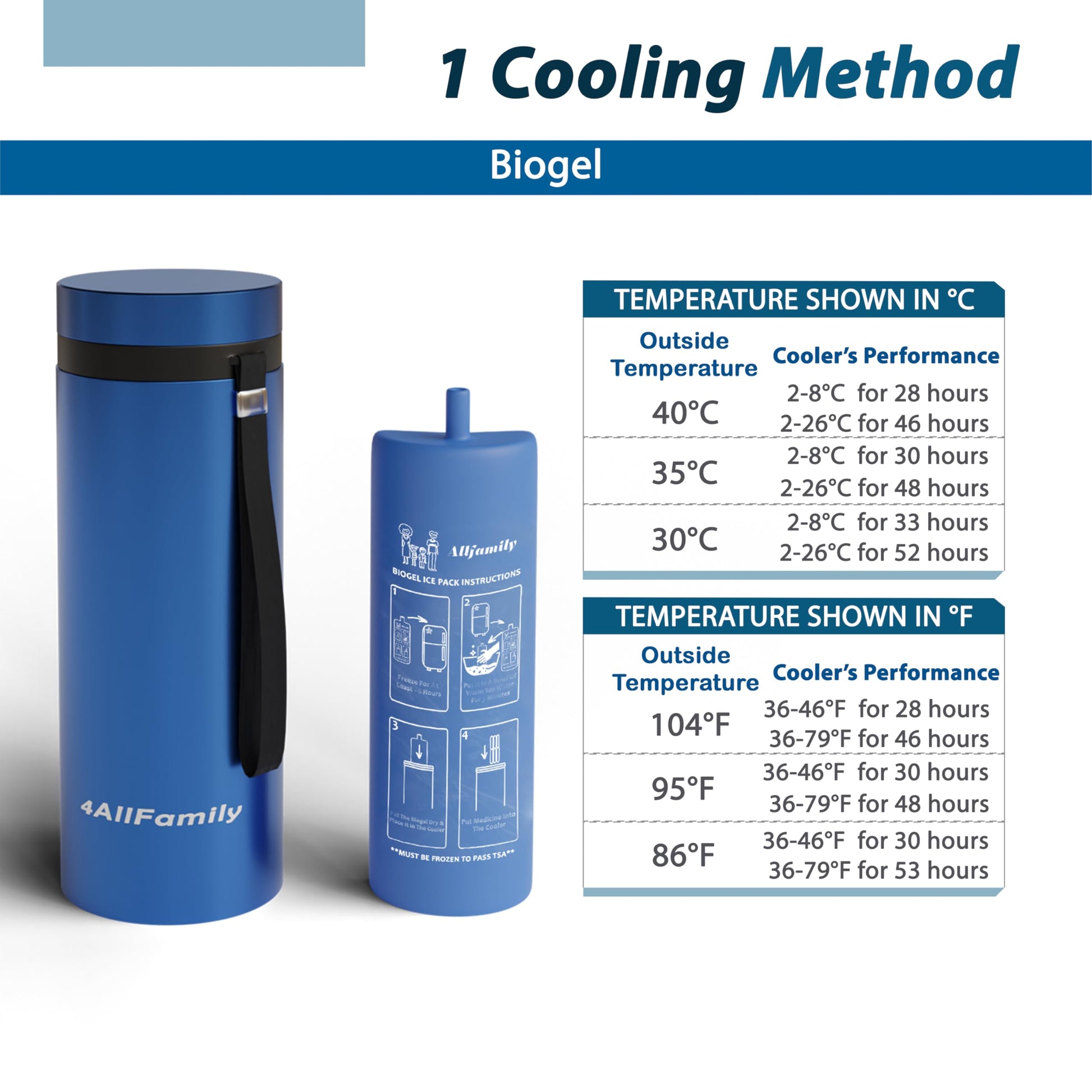 4AllFamily Nomad Insulin Travel Case Cooler – 52H Non-Electric Insulin Cooler Travel Case TSA Approved with Lightweight Design – Air Traveling Friendly, Reusable Big Blue Thermo for Medications