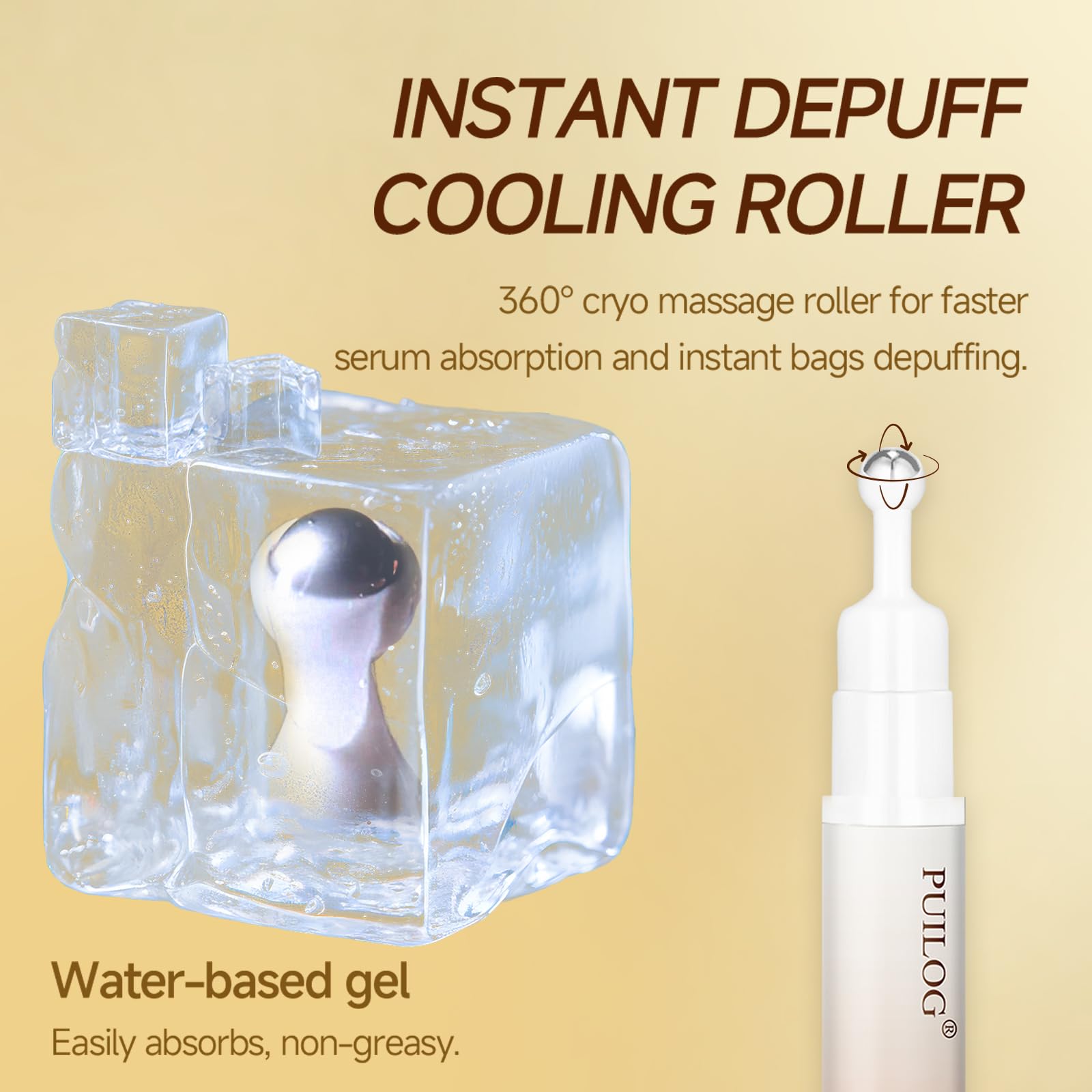 - 5% Caffeine-Powered Eye Serum: Caffeine eye cream can reduces puffiness and eye bags in 3-5 minutes, dark circle in 4-8 weeks. Chilled massage rollerball boosts under eye microcirculation, instantly refreshing tired eyes.