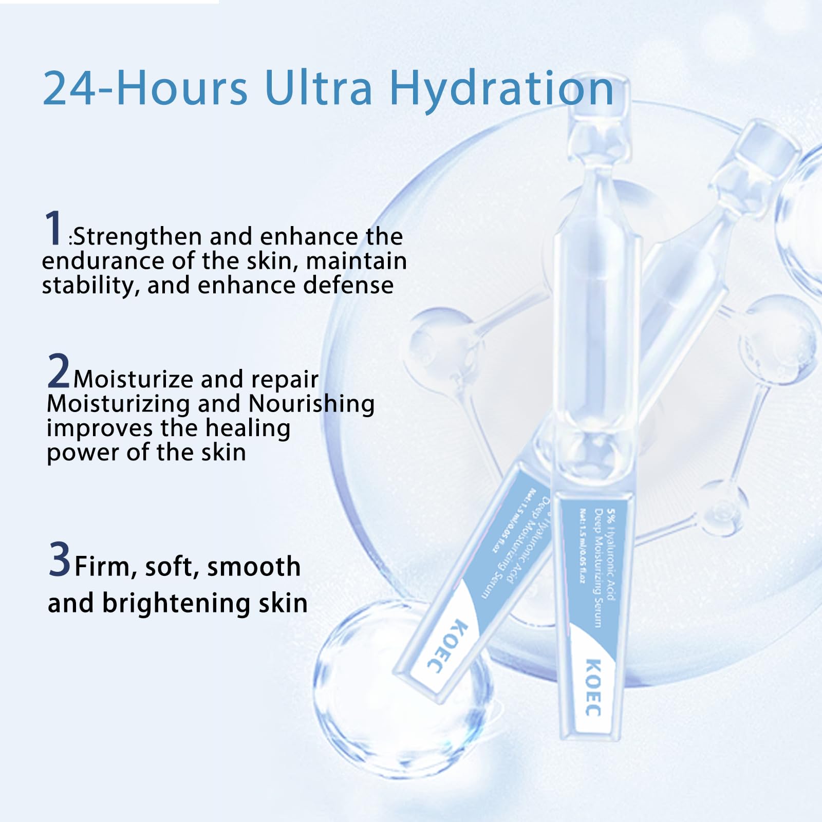 5% Hyaluronic Acid Serum,Acid Serum for Face,UltraHydrating Serum 5% Hyaluronic Acid Smoother Skin,Anti-Aging,Hyaluronic Acid Tubes Single-Use Vials Pre-makeup Skincare(1.5 ml*30)