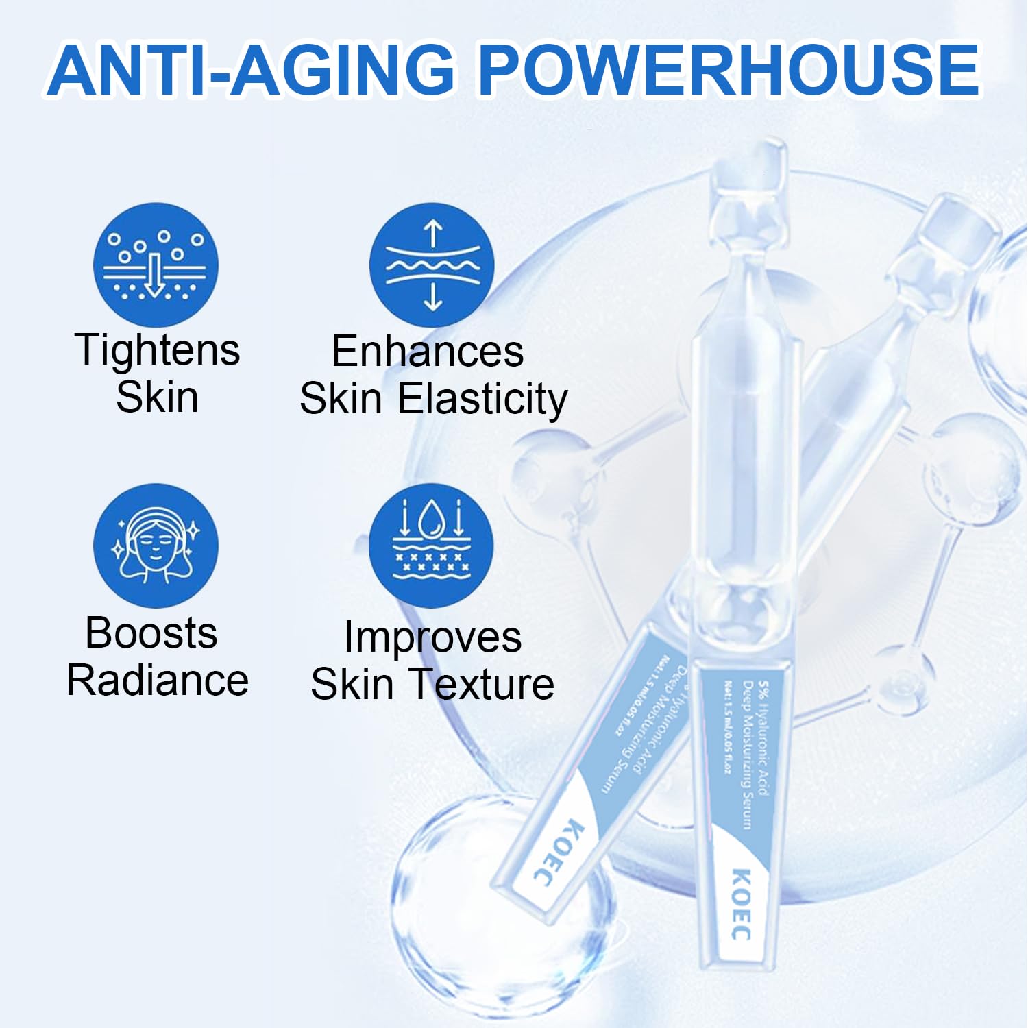 5% Hyaluronic Acid Serum Ultra-Moisturizing Vials,Hyaluronic Acid Facial Serum, Single-Use Hyaluronic Acid Tubes,Intensive Hydration,Enhances Skin Elasticity,Pre-Makeup Moisturizing Care (1 Box of 30)