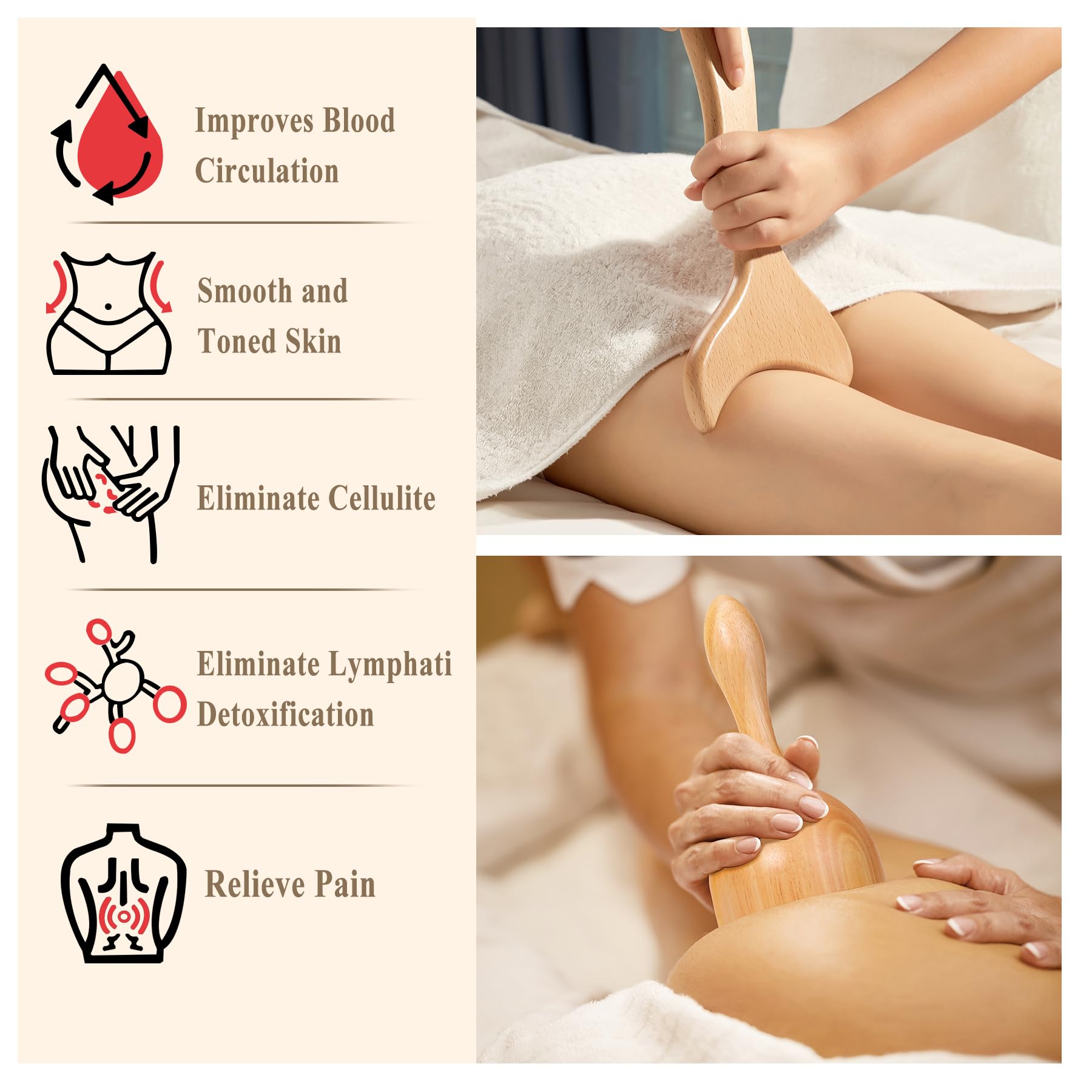 - [𝐍𝐨𝐧-𝐢𝐧𝐯𝐚𝐬𝐢𝐯𝐞 𝐓𝐫𝐞𝐚𝐭𝐦𝐞𝐧𝐭]: Wooden massager help to define arms and legs, chisel the waist, firm thighs and buttocks, reduce back and belly fat, and stimulate lymphatic drainage. Our wooden massagers give you all the benefits of conventional, surgical solutions for body sculpting, contouring, and anti-cellulite, without the surgery aspect of things.