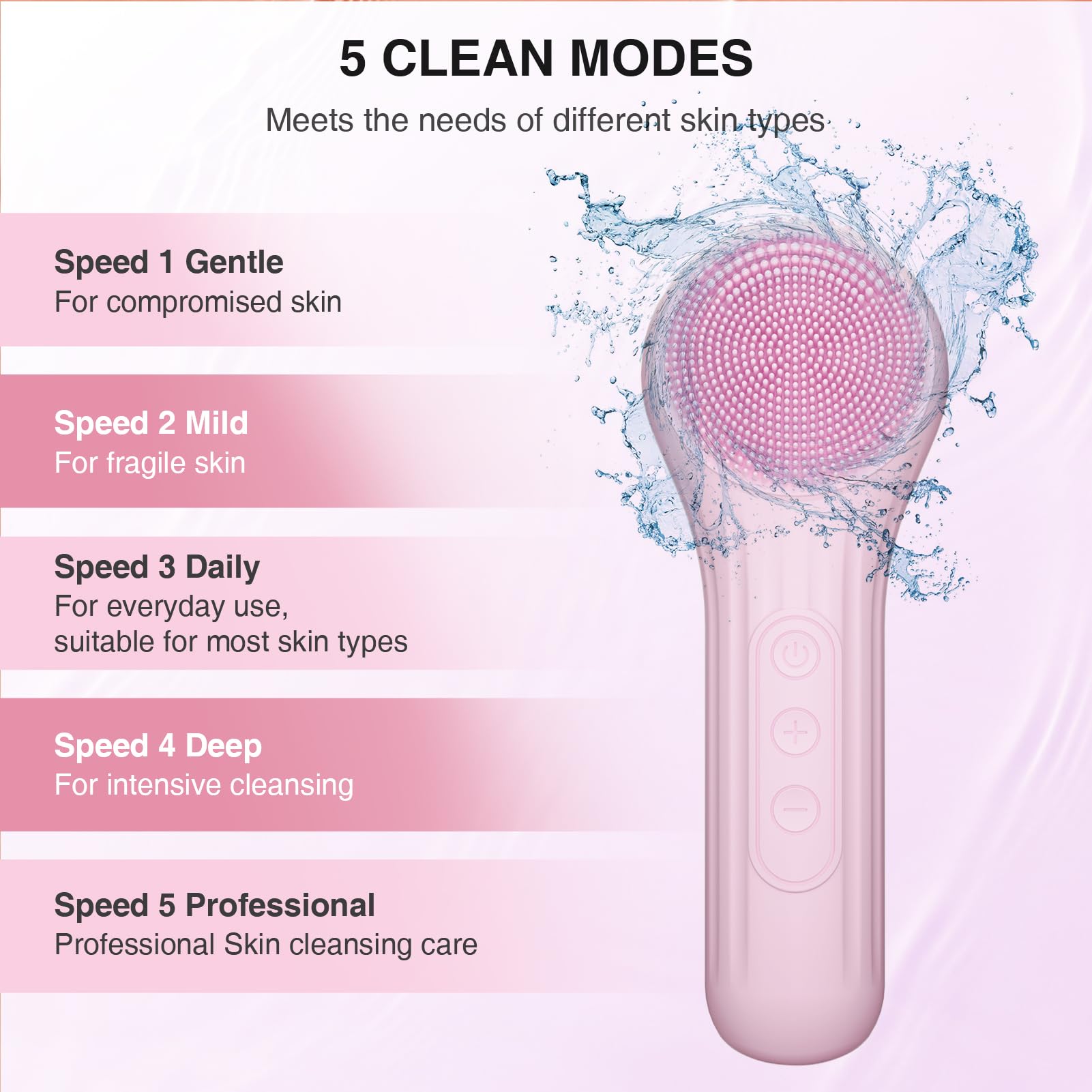 - For All Skin Types: Five speed adjustments allow you to choose the intensity you want. Meets the needs of all skin types. Helps make your skincare routine easy. This smart silicone face scrubber for women is a high-end cleansing tool that combines a variety of advanced technologies. It provides an all-encompassing solution for daily skincare.