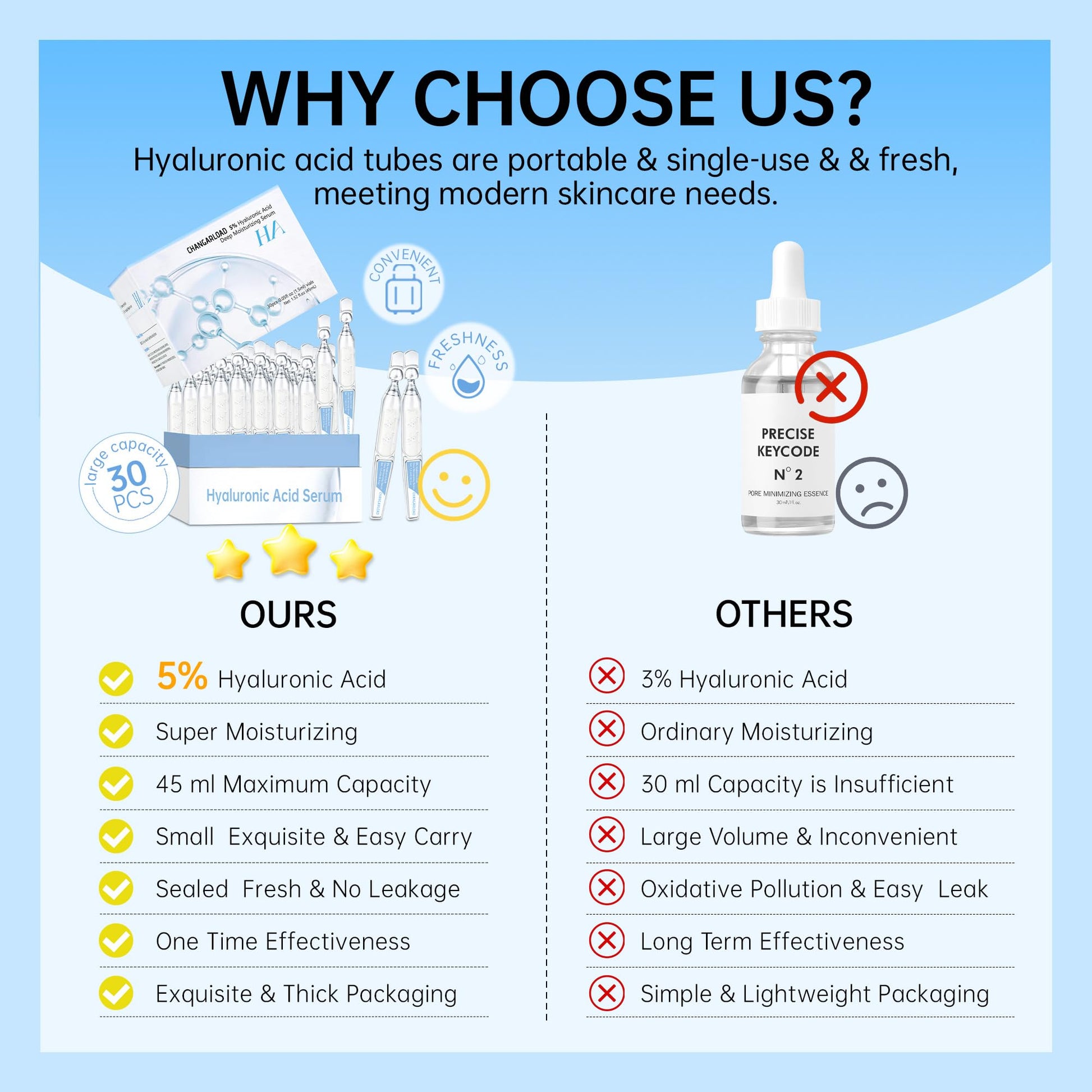 5% Ultra Hydrating Serum Vials with Niacinamide,Collagen Stem Cell,Wake Nature Perfection|AntiAging|Deep Hydration|CellActivation-1.5ml*30Pcs Ultra Hyaluronic Acid Serum for Face