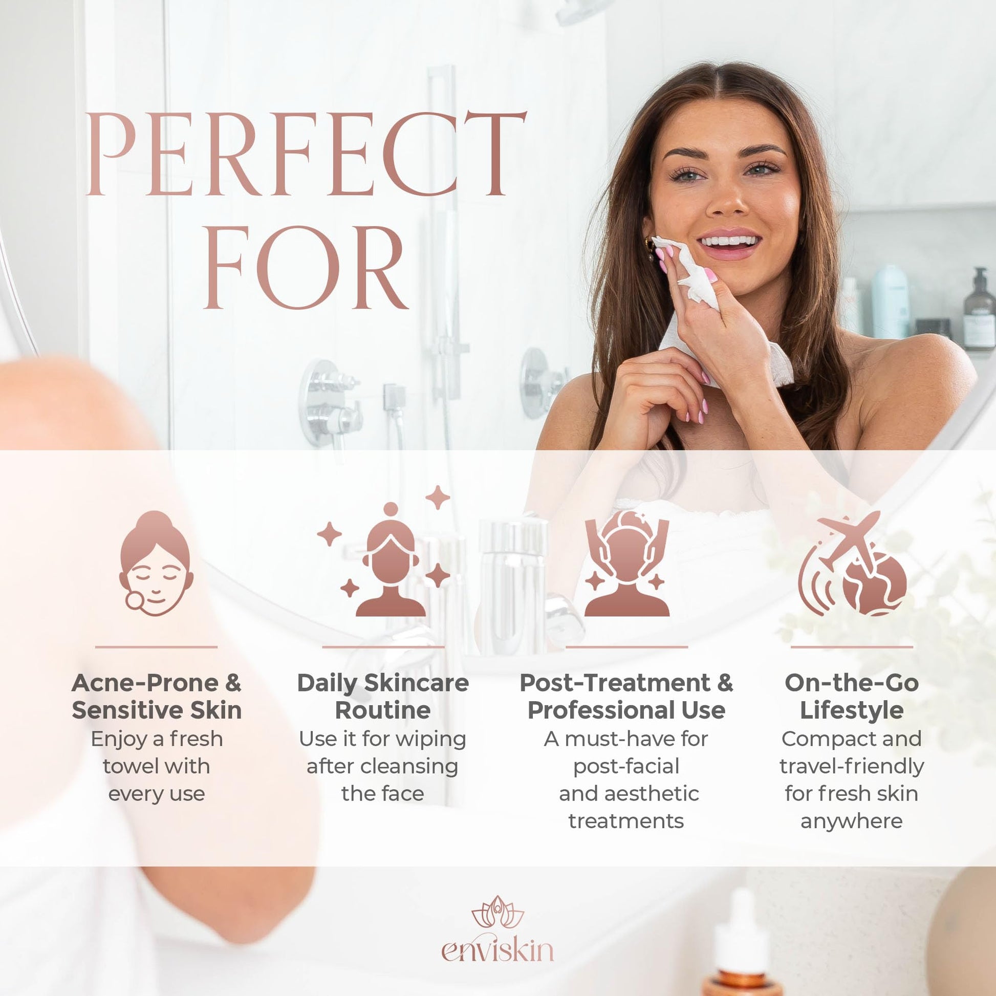 - 50 Super Soft Facial Towels - Make skincare feel less like a chore and more like a treat, with 50 luxurious face cloths that feel too fancy to be disposable (but are). With downy-soft plant fibers that mimic real cotton, they’re great for everyday routines or sensitive post-treatment skin.