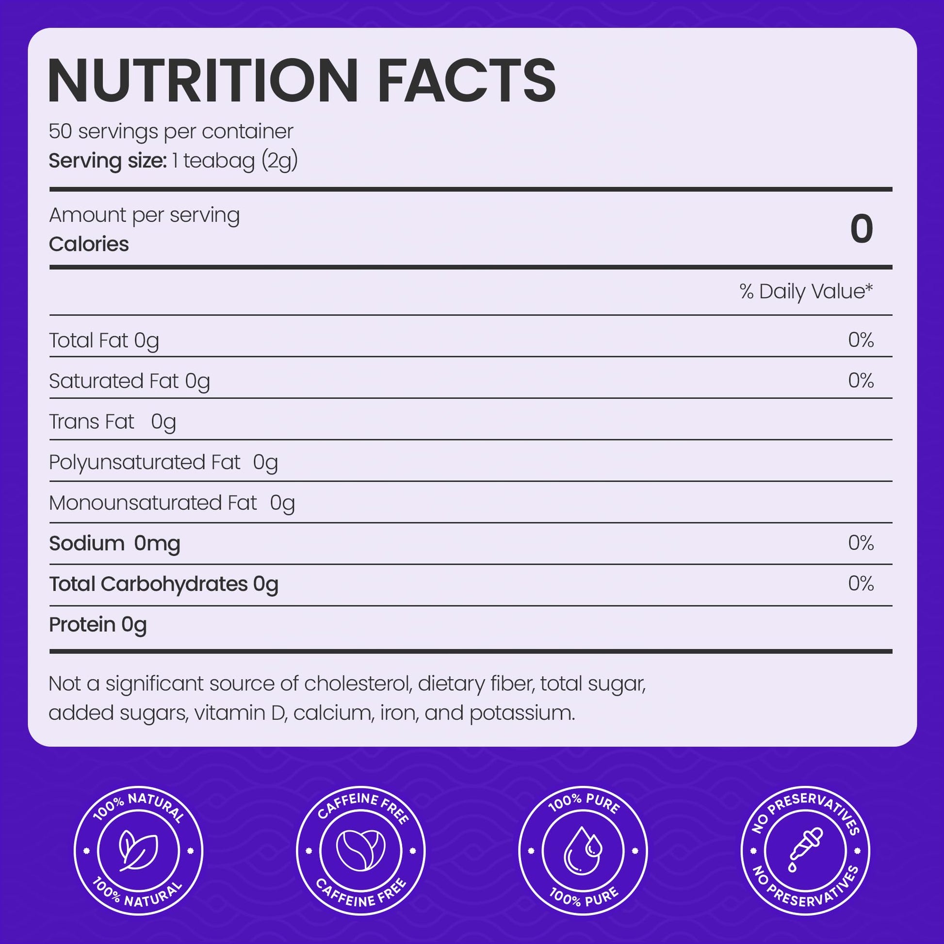 - Caffeine-Free & Preservative-Free: Enjoy a calming, all-natural tea experience with no artificial additives. Our herbal tea is caffeine free, all natural with No preservatives or artificial colors.