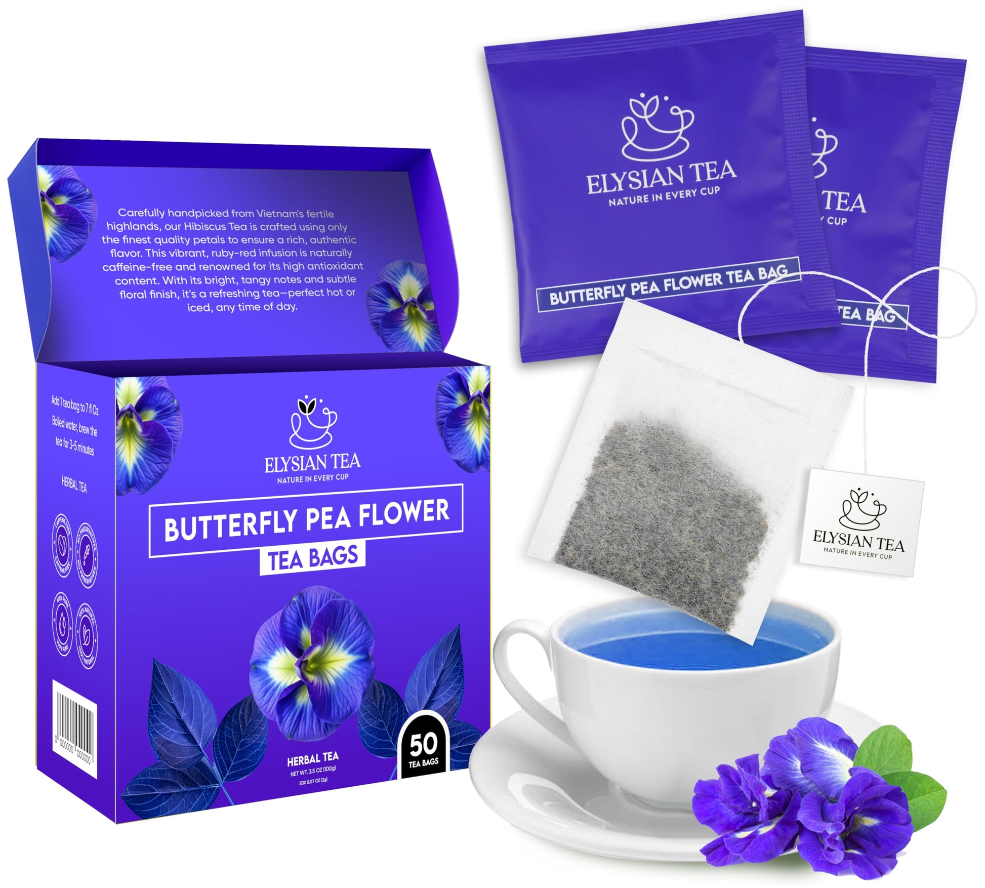50 PACK Butterfly Pea Tea Bags – Individual Wrapped Tea Bags – Vibrant Blue All-Natural Herbal Tea | Caffeine Free | No Preservatives - Rich In Antioxidants
