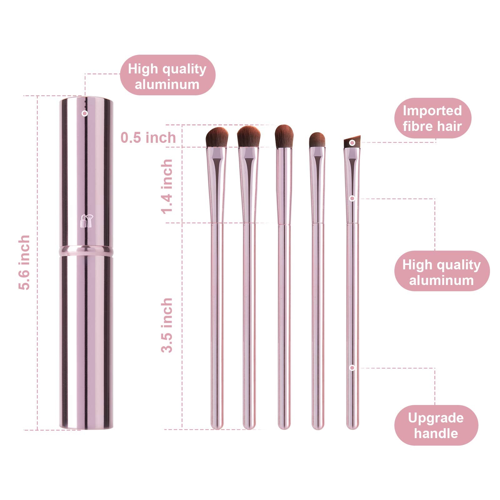 5Pcs Eyeshadow Brush Set, Portable Eye brushes, Premium Eye Makeup Brush, Eyeliner Brush, Angled Brush by YUESHENNAN (pink).